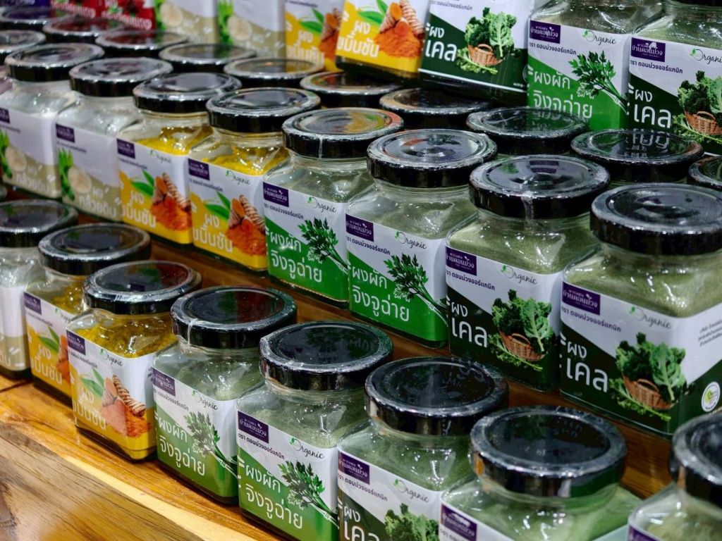ในกลุ่มของสินค้าเพื่อสุขภาพและความงาม (Health and Beauty) บริษัท ไทย ออร์แกนิคส์ เวจจิทะเบิล แอนด์ ฟรุตส์ จำกัด หรือฟาร์มผักบ้านดอนม่วง จังหวัดอุดรธานี มีความตั้งใจในการส่งเสริมการกินผักให้มากขึ้น โดยต่อยอดจากเดิมที่จำหน่ายผักสดอย่างเดียว นำผลผลิตผักที่เหลือล้นจากฟาร์ม ตั้งแต่จิงจูฉ่าย เคล อัญชัน กระเจี๊ยบแดง ขมิ้นชัน กล้วยดิบ นำมาอบ และบดเป็นผลิตภัณฑ์ชนิดผงจากผักนานาชนิด