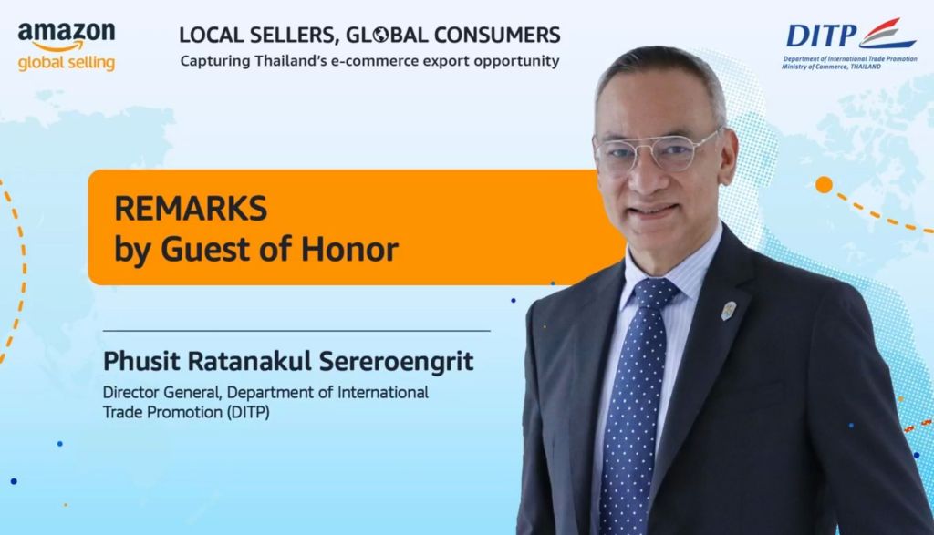 นายภูสิต รัตนกุล เสรีเริงฤทธิ์ อธิบดีกรมส่งเสริมการค้าระหว่างประเทศ (DITP) กระทรวงพาณิชย์ เผยว่า เมื่อเดือนธันวาคม 2563 ที่ผ่านมา รองนายกรัฐมนตรีและรัฐมนตรีว่าการกระทรวงพาณิชย์ (นายจุรินทร์ ลักษณวิศิษฏ์) ได้ให้เกียรติเป็นประธานในการกล่าวปาฐกถาพิเศษในงาน Amazon Global Selling Thailand Virtual Seller Conference ภายใต้ธีมงาน “The Future of Made in Thailand” ซึ่งถือได้ว่า เป็นการประกาศความร่วมมือระหว่างรัฐบาลไทยกับแพลตฟอร์ม Amazon ในการร่วมสนับสนุนผู้ประกอบการ SMEs ทั้งผู้ผลิต และเจ้าของแบรนด์ไทย ให้สามารถแสดงศักยภาพและขยายโอกาสในการส่งออกสินค้า “Made in Thailand” เข้าสู่ตลาดสหรัฐอเมริกา โดยเฉพาะอย่างยิ่งกับแพลตฟอร์ม Amazon.com ถือได้ว่าเป็นแพลตฟอร์มค้าปลีกออนไลน์ระดับโลกที่ใหญ่ที่สุดของประเทศสหรัฐอเมริกาและยังมีเครือข่ายที่สามารถต่อยอดไปยังกลุ่มลูกค้าในอีก 185 ประเทศทั่วโลก