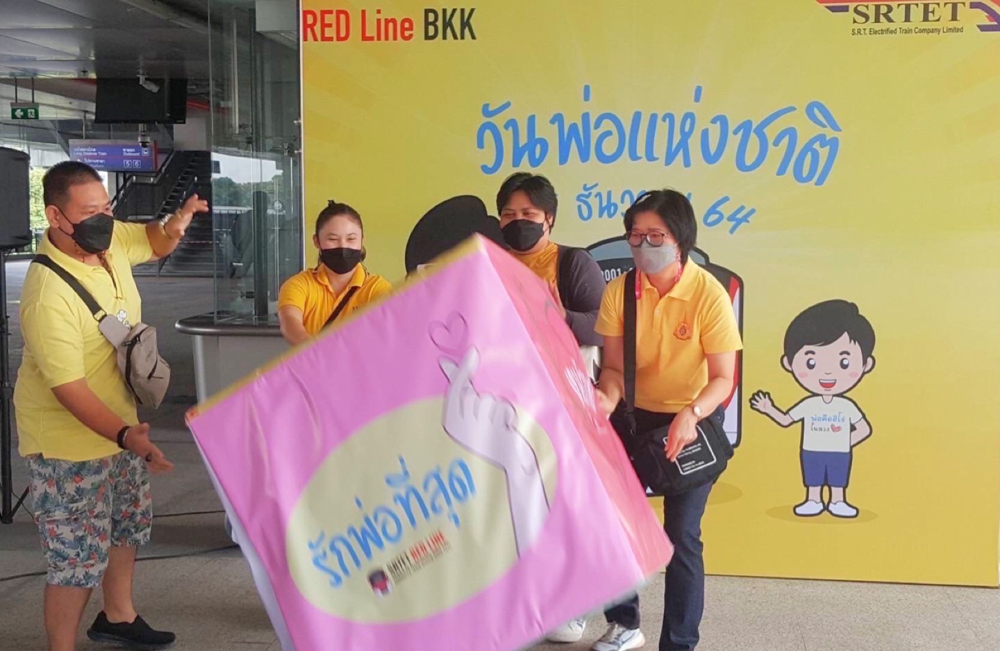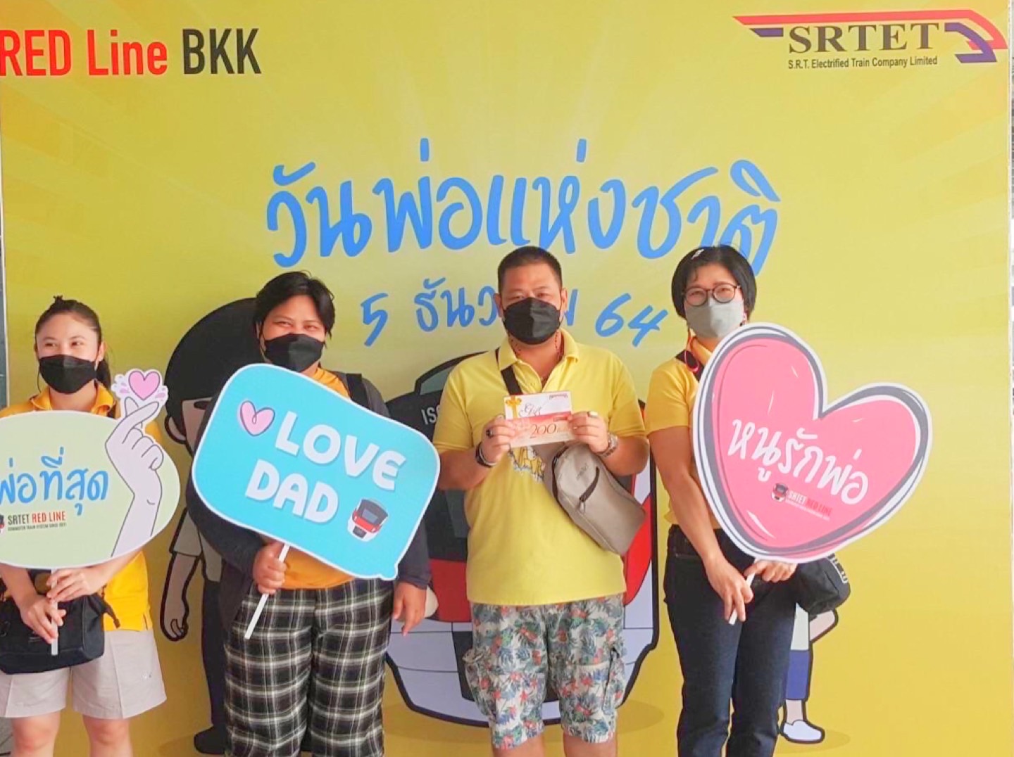 วันที่ 5 ธันวาคม 2564 ที่สถานีรถไฟฟ้าชานเมืองสายสีแดงดอนเมือง นายสุเทพ พันธุ์เพ็ง กรรมการผู้อำนวยการใหญ่ บริษัท รถไฟฟ้า ร.ฟ.ท. จำกัด ผู้ให้บริการรถไฟฟ้าชานเมืองสายสีแดง ให้เกียรติเข้าร่วมกิจกรรม “ วันพ่อแห่งชาติ” ซึ่ง บริษัท รถไฟฟ้า ร.ฟ.ท. จำกัด ได้จัดขึ้นเพื่อส่งมอบความสุขและสร้างรอยยิ้มพร้อมเสียงหัวเราะให้กับคู่คุณพ่อ-คุณลูกต้อนรับ “วันพ่อแห่งชาติ” โดยเปิดโอกาสให้คู่คุณพ่อ-คุณลูก ได้ร่วมเล่นเกมส์มหาสนุก เพื่อลุ้นรับบัตรของขวัญสุดพรีเมี่ยมจากไอศกรีม Swensen’s มูลค่า 200 บาท 300 รางวัล พร้อมรางวัลอื่นๆอีกมากมายรวมกว่า 1,000 รางวัล โดยมีคู่คุณพ่อ-คุณลูกให้ความสนใจเข้าร่วมกิจกรรมเป็นจำนวนมาก รวมทั้ง “คุณหรั่ง พระนคร” อินฟลูเอนเซอร์ที่สร้างแรงบันดาลใจในการใช้ชีวิต ที่พาลูกมาร่วมสนุกเล่นเกมส์เพื่อลุ้นรับของรางวัลด้วย ทั้งนี้กิจกรรมดังกล่าวได้จัดขึ้นภายใต้มาตรการป้องกันการแพร่ระบาดของโรคโควิด-19 อย่างเคร่งครัด
