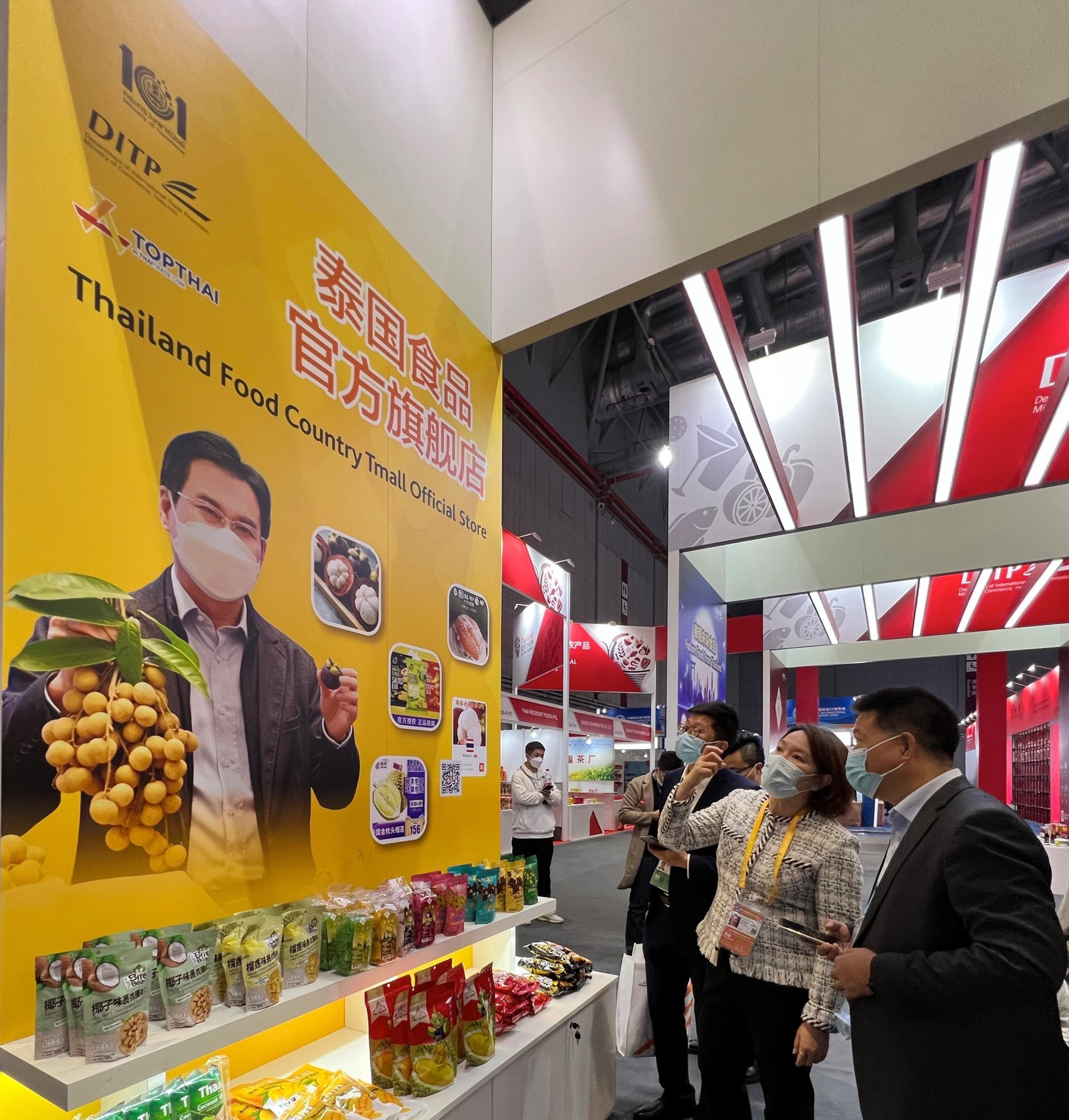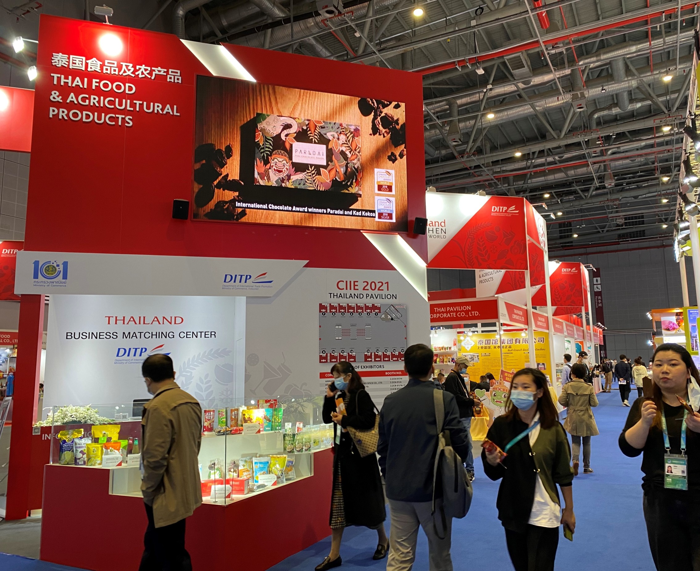 กรมส่งเสริมการค้าระหว่างประเทศ (DITP) โชว์ผลงานนำผู้ประกอบการไทยเข้าร่วมงานแสดงสินค้านำเข้านานาชาติจีน (CIIE 2021) ประสบความสำเร็จเกินคาด ตกลงซื้อขายภายใน 1 ปีได้กว่า 328 ล้านบาท เผยผลไม้อบแห้ง ทุเรียนอบกรอบ ไก่แช่เย็นแช่แข็ง ข้าวหอมมะลิ เครื่องแกง หนังปลากรอบปรุงรส ชาอู่หลง ได้รับความสนใจสูง นายภูสิต รัตนกุล เสรีเริงฤทธิ์ อธิบดีกรมส่งเสริมการค้าระหว่างประเทศ (DITP) กระทรวงพาณิชย์ เปิดเผยถึงผลการนำผู้ประกอบการไทยเข้าร่วมงานแสดงสินค้านำเข้านานาชาติจีน หรือ China International Import Expo (CIIE 2021) ที่จัดขึ้นระหว่างวันที่ 5-10 พฤศจิกายน 2564 ที่ศูนย์นิทรรศการและการประชุมแห่งชาติ นครเซี่ยงไฮ้ สาธารณรัฐประชาชนจีน ว่า งานในปีนี้ กรมฯ ได้นำผู้ประกอบการไทยเข้าร่วมจัดแสดงในส่วนองค์กรและธุรกิจ กลุ่มสินค้าอาหารและเกษตรแปรรูป บนพื้นที่ขนาด 570 ตารางเมตร ประกอบด้วยพื้นที่จัดแสดงสินค้าของผู้ประกอบการไทยผ่านผู้แทนและตัวแทนการค้าในจีน จำนวน 14 บริษัท 16 คูหา พื้นที่จัดแสดงประชาสัมพันธ์สินค้าไทย อาทิ สินค้าอาหารอนาคต (Future Food) สินค้าที่ได้รับเครื่องหมายรับรอง Thai SELECT สินค้าภายใต้ Thailand Food Country Tmall Official Store กว่า 46 บริษัท รวมทั้งสิ้นกว่า 60 บริษัท และพื้นที่ประชาสัมพันธ์กรมฯ ซึ่งได้รับความสนใจจากผู้ซื้อ ผู้นำเข้า ทั้งชาวจีนและชาวต่างชาติ เข้ามาชมสินค้าและสอบถามรายละเอียดของสินค้าไทยเป็นจำนวนมาก โดยผลการเข้าร่วมงาน ประสบความสำเร็จมีมูลค่าการสั่งซื้อรวมภายใน 1