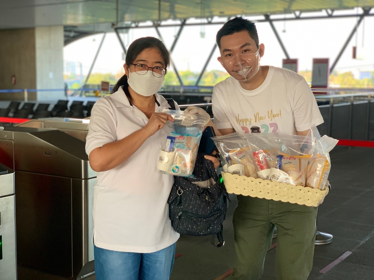 วันที่ 1 มกราคม 2565 บริษัท รถไฟฟ้า ร.ฟ.ท. จำกัด หรือผู้ให้บริการรถไฟฟ้าชานเมืองสายสีแดง จัดกิจกรรมสุดพิเศษ ส่งมอบความสุขต้อนรับปีใหม่ให้แก่ผู้โดยสาร โดยคุณสุเทพ พันธุ์เพ็ง กรรมการผู้อำนวยการใหญ่ บริษัท รถไฟฟ้า ร.ฟ.ท. จำกัด พร้อมทีมอินฟลูเอนเซอร์ นำโดย เกรซ นรินทร มิสไทยแลนด์เวิลด์ 2019 ทูตกรมสุขภาพจิต , โจ-โจ้ คู่แฝดคนขับรถไฟฟ้าโปรไฟล์พรีเมี่ยมสุดฮอตที่ได้รับการพูดถึงอย่างมากในโลกออนไลน์ และเน็ตไอดอลรวม 13 คน ออกเสิร์ฟอาหารเช้ามื้อแรกของปี ให้แก่ผู้โดยสารทั้ง 13 สถานี ตั้งแต่เวลา 06.30 น. ทั้งนี้กิจกรรมดังกล่าวจัดขึ้นภายใต้มาตรการป้องกันการแพร่ระบาดของไวรัสโควิด-19 อย่างเคร่งครัด