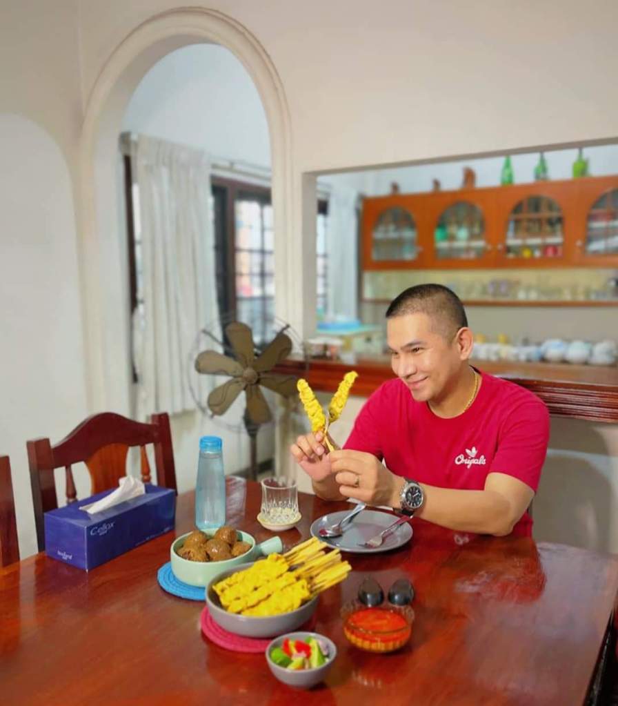 ตามมาด้วย ไก่สะเต๊ะถังประจันบาน เนื้อนุ่ม ละมุม ลิ้น น้ำจิ้มอาจาดน้ำเข้มข้น ผักสด + น้ำจิ้ม Peanut Sauce ข้นเหนียว กลมกล่อม หอมหวานกำลังดี