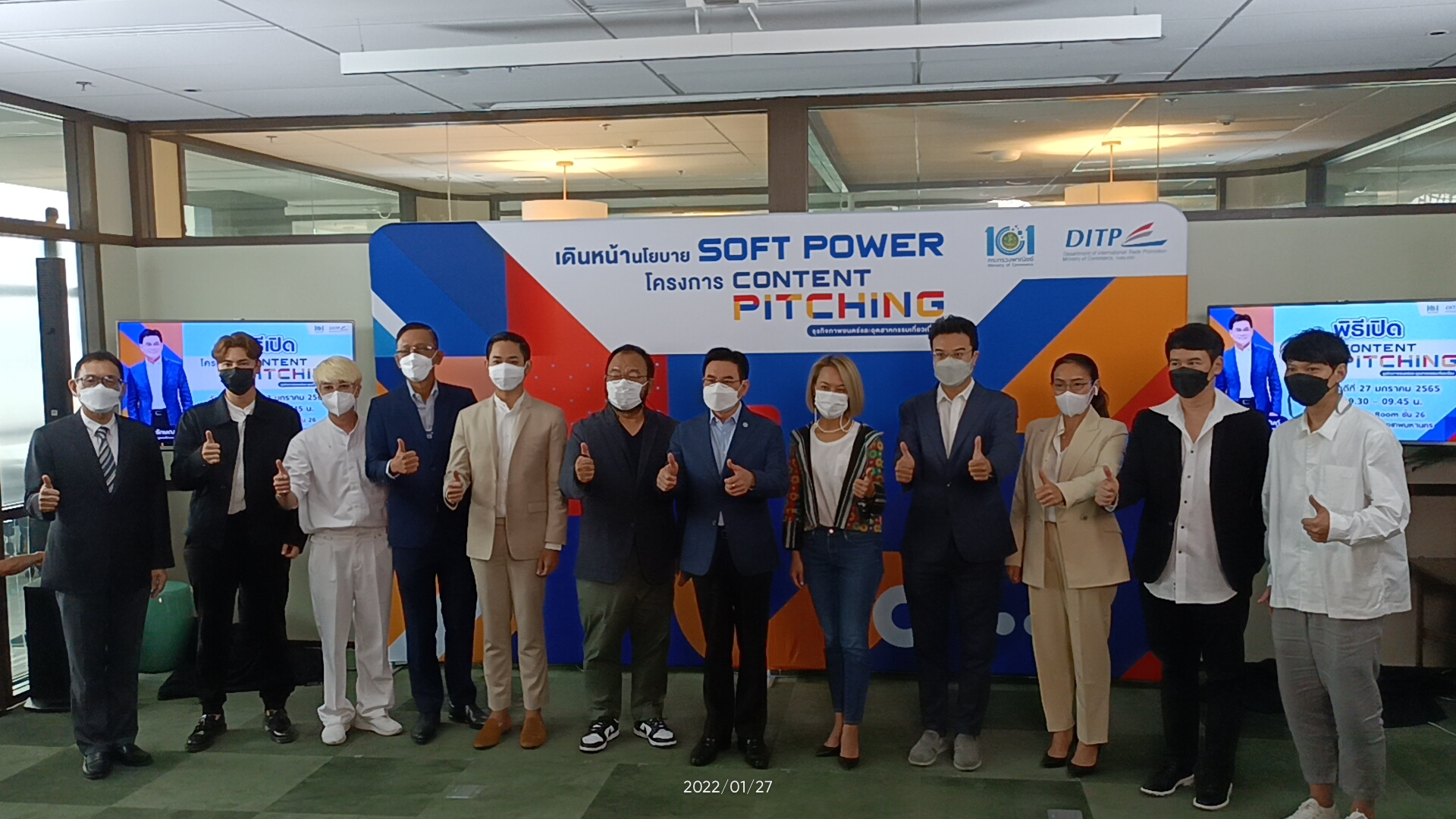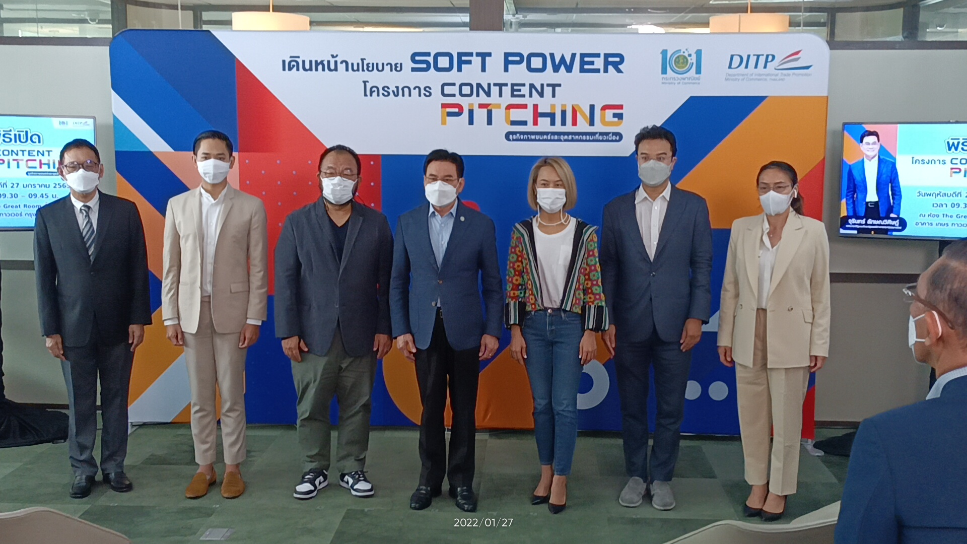 นายจุรินทร์ ลักษณวิศิษฏ์ รองนายกรัฐมนตรีและรัฐมนตรีว่าการกระทรวงพาณิชย์เป็นประธานพิธีเปิดโครงการ “คอนเทนต์ พิทชิ่ง” (Content Pitching) ธุรกิจภาพยนตร์และอุตสาหกรรมเกี่ยวเนื่อง ณ อาคาร เกษร ทาวเวอร์ กรุงเทพมหานคร พร้อมด้วยนางมัลลิกา บุญมีตระกูล มหาสุข ที่ปรึกษารัฐมนตรีว่าการกระทรวงพาณิชย์ นายเอกฉัตร ศีตวรรัตน์ รองอธิบดีกรมส่งเสริมการค้าระหว่างประเทศ นายปริญญ์ พานิชภักดิ์ และนายจาฤก กัลย์จาฤก