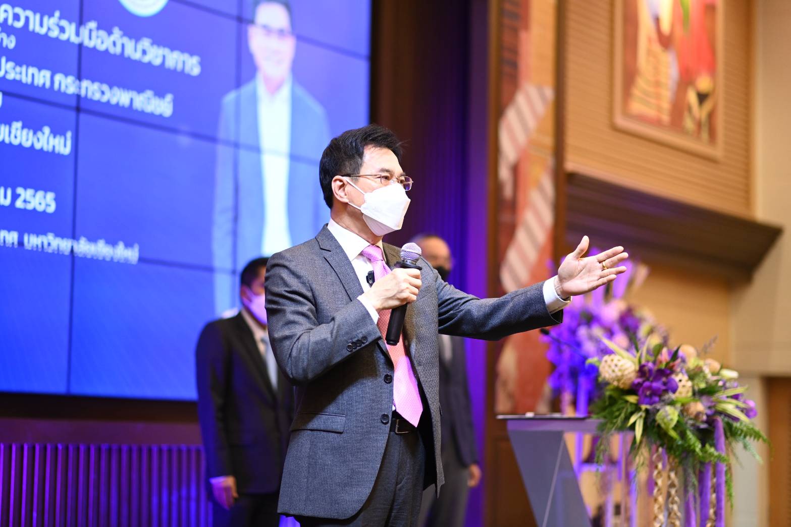 สำหรับการลงนามข้อตกลงความร่วมมือด้านวิชาการ(MoU)ระหว่างกรมส่งเสริมการค้าระหว่างประเทศกับมหาวิทยาลัยเชียงใหม่ เพื่อบูรณาการความร่วมมือในการเพิ่มพูนองค์ความรู้ด้านการค้าระหว่างประเทศให้กับน้องๆนักศึกษามหาวิทยาลัยเชียงใหม่หรือน้องๆ Gen Z ซึ่งเป็นความหวังของครอบครัวและประเทศในการขับเคลื่อนเศรษฐกิจต่อไปในอนาคต ซึ่งเป็นนโยบายที่ตนมอบให้กับกระทรวงพาณิชย์ดำเนินการเพราะทราบว่าเด็กยุคใหม่ส่วนใหญ่อยากเป็นนายตัวเอง จึงเป็นที่มาของนโยบายที่ตนมอบให้กับกระทรวงพาณิชย์จัดหลักสูตร ปั้น Gen Z เป็น CEO เพื่อให้มีโอกาสเติบโตเป็นนายของตัวเองตามฝันที่เรามี ในประเทศมีน้องๆ Gen z