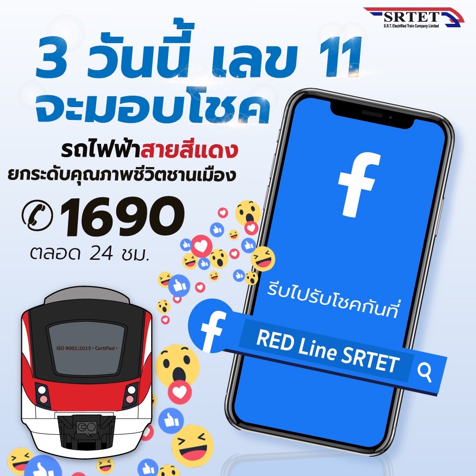 บริษัท รถไฟฟ้า ร.ฟ.ท. จำกัด ผู้ให้บริการรถไฟฟ้าชานเมืองสายสีแดงครบรอบปีที่ 11 ด้วยมาตรฐานการให้บริการระดับสากล และการเสริมทัพช่องทางติดต่อและติดตามข่าวสารในสื่อสังคมออนไลน์ทุกแพลตฟอร์ม เพื่อยกระดับประสิทธิภาพการให้บริการ พร้อมจัดกิจกรรมส่งเสริมการตลาดออนไลน์และออฟไลน์ให้แก่ผู้โดยสารได้ลุ้นรับรางวัลเป็นประจำทุกเทศกาล