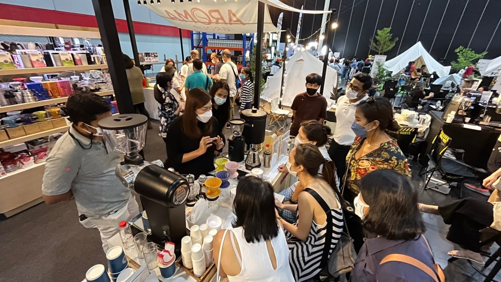 นายกวินกล่าวต่อไปว่า ในงานยังมีโซนโรงคั่ว Café Hopping Street ซึ่งได้รวบรวมโรงคั่วที่หลากหลายมาไว้ในงานให้ผู้ชมงานได้ชิมและช็อปเมล็ดกาแฟในราคาพิเศษสุด และยังมีเวิร์คช็อป สอนคอร์สบาริสต้าสูตรเร่งรัดเพื่อการเปิดร้านกาแฟ นำโดยแชมป์นักชงกาแฟหลายสมัย “จีจี้ แม่มดนักชง”
