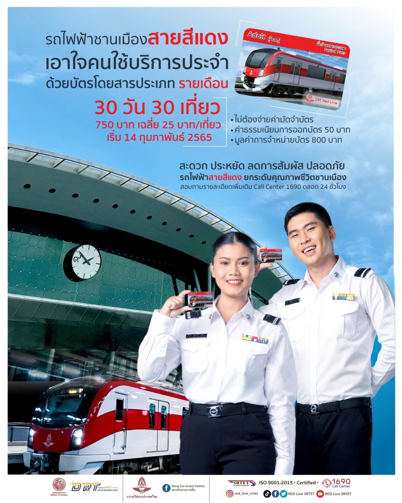 รถไฟฟ้าชานเมืองสายสีแดงเพิ่มทางเลือกใหม่ในการเดินทางให้แก่ผู้โดยสารเปิดจำหน่ายบัตรโดยสารประเภทรายเดือน 30 วัน 30 เที่ยว ที่ถือว่ามีความประหยัด และคุ้มค่า ซึ่งจะช่วยแบ่งเบาภาระของผู้โดยสารจากภาวะเศรษฐกิจในปัจจุบันได้ตามนโยบายของรัฐมนตรีว่าการกระทรวงคมนาคม เมื่อวันที่ 14 กุมภาพันธ์ 2565 ที่ผ่านมา