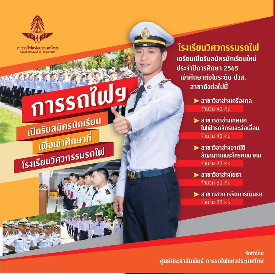 เพื่อเป็นการสนับสนุนการผลิตบุคลากรคนรุ่นใหม่ที่มีความรู้ความสามารถ รองรับการเติบโตของกิจการการรถไฟฯ ในอนาคต โรงเรียนวิศวกรรมรถไฟ ได้ประกาศเปิดรับสมัครนักเรียนวิศวกรรมรถไฟ ประจำปีการศึกษา 2565 ใน 5 สาขาวิชา รวม 170 อัตรา โดยเปิดรับสมัครทั้งบุคคลภายนอกทั่วไปและบุตรพนักงานการรถไฟฯ (ครฟ.) ผ่านทางออนไลน์ ที่เว็บไซต์ https://admission.schoolconnex.app/RTS/year/2565 ตลอด 24 ชั่วโมง เริ่มตั้งแต่บัดนี้จนถึงเวลา 16.00 น. ของวันที่ 18 มีนาคม 2565 โดยมีสาขาวิชาที่เปิดรับสมัคร ดังนี้