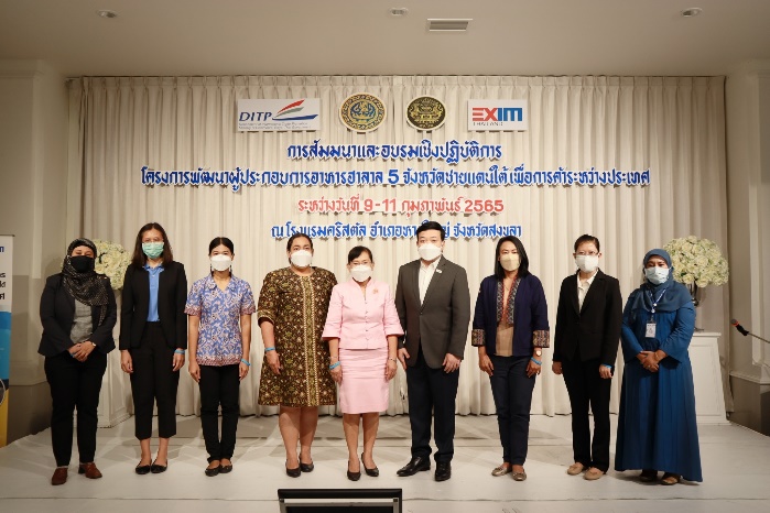 ฮาลาล 5 จังหวัดชายแดนใต้เพื่อการค้าระหว่างประเทศ โดยร่วมมือกับสำนักงานพาณิชย์จังหวัดสงขลา สำนักงานพาณิชย์จังหวัดสตูล สำนักงานพาณิชย์จังหวัดยะลา สำนักงานพาณิชย์จังหวัดปัตตานี สำนักงานพาณิชย์จังหวัดนราธิวาส ศูนย์อำนวยการบริหารจังหวัดชายแดนภาคใต้ (ศอ.บต.) และธนาคารเพื่อการส่งออกและนำเข้าแห่งประเทศไทย (EXIM Bank) ช่วยพัฒนาศักยภาพและเสริมสร้างขีดความสามารถในการแข่งขันของผู้ประกอบการอาหารและเครื่องดื่มฮาลาลใน 5 จังหวัดชายแดนใต้ (สงขลา สตูล ยะลา ปัตตานี และนราธิวาส) ที่สามารถผลิตสินค้าอันเป็นอัตลักษณ์ท้องถิ่นให้ได้รับการพัฒนามาตรฐานเพื่อการส่งออกไปยังตลาดต่างประเทศ โดยเฉพาะอย่างยิ่งสินค้าอาหารและเครื่องดื่มซึ่งเป็นคลัสเตอร์สินค้าเป้าหมายสำคัญของรัฐบาลไทย ทั้งนี้ กรมฯ และสำนักงานพาณิชย์จังหวัด ได้จัดกิจกรรมพัฒนาผู้ประกอบการใน 5 จังหวัดชายแดนภาคใต้ไปแล้วเมื่อวันที่ 9-11 กุมภาพันธ์ 2565 ที่ผ่านมา โดยมีผู้ประกอบการเข้าร่วมกิจกรรมรวมทั้งสิ้น 92 ราย จาก 61 บริษัท/วิสาหกิจชุมชน ซึ่งผู้ประกอบการที่เข้าร่วมงาน ได้รับความรู้จากผู้อำนวยการสำนักงานส่งเสริมการค้าในต่างประเทศ หรือทูตพาณิชย์ จากดูไบ (นายปณต บุณยะโหตระ) นครเฉิงตู (นางสาวเนตรนภิศ จุลกนิษฐ) และกรุงกัวลาลัมเปอร์ (นายวรวรรณ วรรณวิล) ที่มาร่วมแบ่งปันประสบการณ์และเทรนด์ตลาดส่งออกให้แก่ผู้ประกอบการ นอกจากนี้ ยังมีกิจกรรม Networking โดย ดร.ภัสสิรี วรเวชธนกุล ผู้ช่วยผู้จัดการส่วนงานบริหารเครือข่ายและที่ปรึกษาผู้ประกอบการจาก EXIM Bank มาร่วมสร้างเครือข่ายและกระชับความสัมพันธ์ในกลุ่มผู้ประกอบการสินค้าอาหารฮาลาล 5 จังหวัดชายแดนใต้ และกิจกรรมแลกเปลี่ยนความรู้ โดยอาจารย์อนุสรณ์ เลิศพัฒนะกุล และอาจารย์ฐาณิญา เจนธุระกิจ ที่มาร่วมแบ่งปันเทคนิคการเจรจาการค้าและการออกงานแสดงสินค้าทั้งในและต่างประเทศ ขณะเดียวกัน กรมฯ ได้เปิดโอกาสให้ผู้ประกอบการใน 5 จังหวัดชายแดนใต้ ได้นำเสนอตัวอย่างสินค้าให้คณะกรรมการได้พิจารณาคัดเลือกสินค้าศักยภาพ เพื่อเข้าสู่กระบวนการ Coaching เป็นรายบริษัท และนำสินค้าดังกล่าว เข้าสู่งานแสดงสินค้าอาหารและเครื่องดื่มที่ใหญ่ที่สุดในเอเชีย หรืองาน THAIFEX–ANUGA ASIA 2022 “The Hybrid Edition ระหว่างวันที่ 24-28 พฤษภาคม 2565 ต่อไป สำหรับโครงการพัฒนาผู้ประกอบการอาหารฮาลาล 5 จังหวัดชายแดนใต้ ได้ดำเนินการมาอย่างต่อเนื่องเป็นปีที่ 5 ตามยุทธศาสตร์การส่งเสริมและพัฒนาศักยภาพธุรกิจและสินค้าอาหารและเครื่องดื่มฮาลาล (พ.ศ. 2559-2563) ซึ่งสอดคล้องกับยุทศาสตร์ชาติ 20 ปี ด้านการสร้างความสามารถ