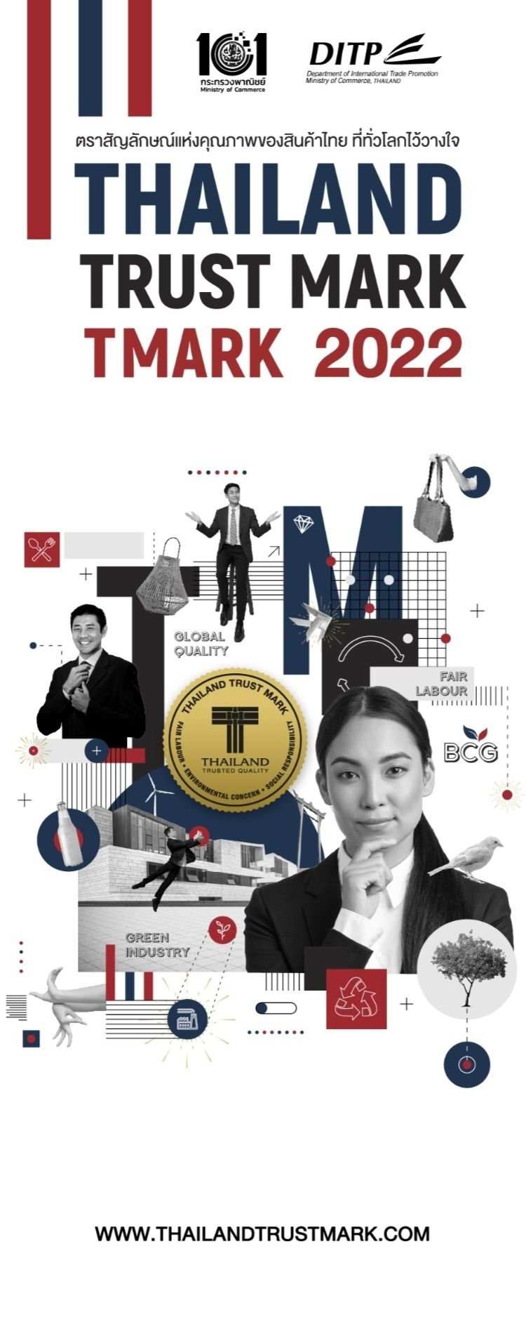 นายภูสิต รัตนกุล เสรีเริงฤทธิ์ อธิบดีกรมส่งเสริมการค้าระหว่างประเทศ กระทรวงพาณิชย์ เปิดเผยว่า “กรมมีแผนงานในการสร้างแบรนด์ประเทศไทยผ่านตราสัญลักษณ์ Thailand Trust Mark (T Mark) มาอย่างต่อเนื่อง ตอกย้ำความเชื่อมั่นและการยอมรับคุณภาพสินค้าและบริการไทยในสายตาผู้บริโภคต่างประเทศ โดยนอกจากจะได้มาตรฐานระดับสากลแล้ว ยังให้ความใส่ใจต่อสิ่งแวดล้อม การใช้แรงงานที่เป็นธรรม และคำนึงถึงผลกระทบต่อสังคม สร้างความมั่นใจในแหล่งกำเนิดสินค้าที่ดี ยกระดับภาพลักษณ์สินค้าและบริการไทยให้น่าเชื่อถือมากขึ้น ซึ่งปีนี้ถือเป็นวาระครบรอบ 10 ปี T Mark จึงมุ่งเน้นส่งเสริมและสนับสนุนผู้ประกอบการที่ให้ความสำคัญในการดำเนินธุรกิจตามแนวคิด BCG Economy มากขึ้น สอดคล้องกับนโยบายสำคัญ ภายใต้ยุทธศาสตร์ ตลาดนำการผลิต ของนายจุรินทร์ ลักษณวิศิษฏ์ รองนายกรัฐมนตรีและรัฐมนตรีว่าการกระทรวงพาณิชย์ ที่มุ่งสนับสนุนผู้ประกอบการไทยให้ผลิตสินค้าที่ตอบโจทย์เมกะเทรนด์โลกตามโมเดล BCG ในการสร้างมูลค่าเพิ่มให้สินค้าและบริการไทย ตลอดจนเพิ่มขีดความสามารถในการแข่งขันภายใต้บริบทการค้ายุคใหม่ เพื่อให้ผู้ประกอบการไทยสามารถปรับตัวในการดำเนินธุรกิจในตลาดต่างประเทศได้อย่างมีประสิทธิภาพแม้ในสภาวการณ์ที่ได้รับผลกระทบจากปัจจัยภายนอกที่ไม่อาจควบคุมได้ อาทิ โรคระบาด หรือภาวะสงคราม”