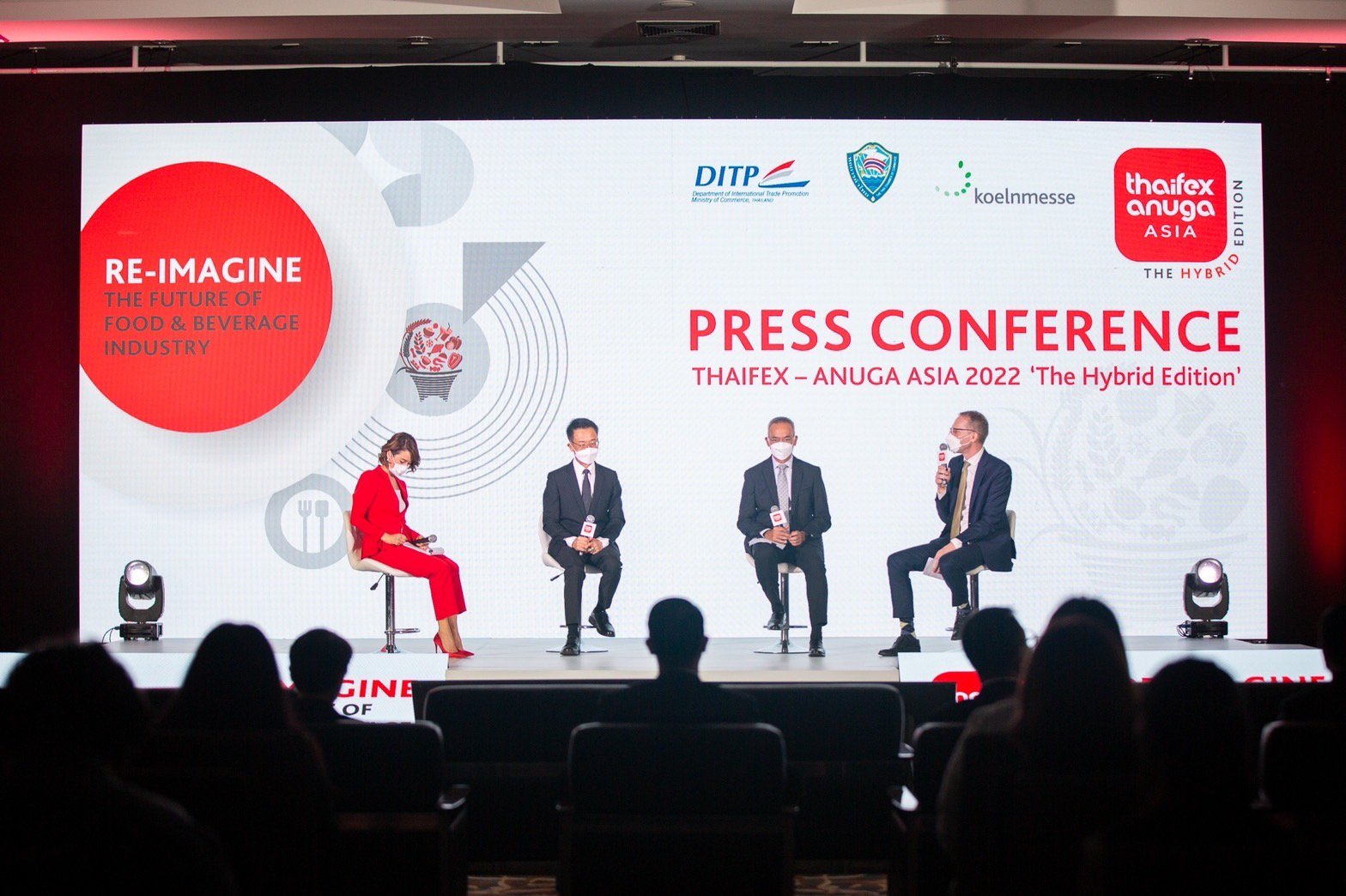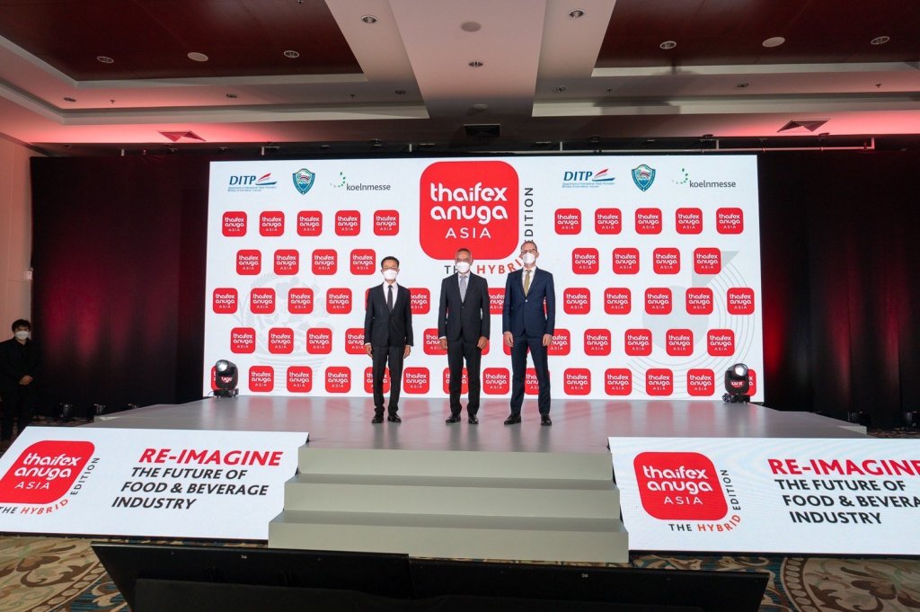 นายภูสิต รัตนกุล เสรีเริงฤทธิ์ อธิบดีกรมส่งเสริมการค้าระหว่างประเทศ กล่าวว่า ก่อนหน้าที่จะเกิดการแพร่ระบาดของเชื้อไวรัสโคโรนา 2019 งานแสดงสินค้าอาหารและเครื่องดื่ม THAIFEX-ANUGA ASIA ได้เคยจัดขึ้นในรูปแบบ On Ground อย่างยิ่งใหญ่เป็นประจำทุกปี แต่เนื่องจากปีที่ผ่านมา สถานการณ์การแพร่ระบาดรุนแรงและกระจายวงกว้าง จึงจำเป็นต้องเปลี่ยนรูปแบบการจัดงานเป็นงานแสดงสินค้าอาหารเสมือนจริง THAIFEX – Virtual Trade Show (VTS) โดยจัดเจรจาธุรกิจออนไลน์หรือ Virtual – Online Business Matching (V-OBM) ผ่านแพลตฟอร์ม http://www.thaifex-vts.com สำหรับปีนี้ สถานการณ์เริ่มคลี่คลาย หลายประเทศรวมถึงประเทศไทยเริ่มผ่อนคลายมาตรการและเดินทางระหว่างประเทศได้แล้ว ผู้จัดงานทั้ง 3 ฝ่าย จึงเห็นพ้องต้องกันที่จะจัด THAIFEX-ANUGA ASIA ให้ยิ่งใหญ่ในรูปแบบ On Ground Trade Show เช่นเดิม แต่ยังคงการจัดงานแสดงสินค้าอาหารเสมือนจริงควบคู่กัน เพื่อรองรับผู้ที่ยังไม่สะดวกเดินทาง โดยใช้ชื่องานปีนี้ว่า THAIFEX-ANUGA ASIA 2022 “The Hybrid Edition” จัดภายใต้คอนเซ็ปต์ Re-imagine the Future of Food & Beverage Industry