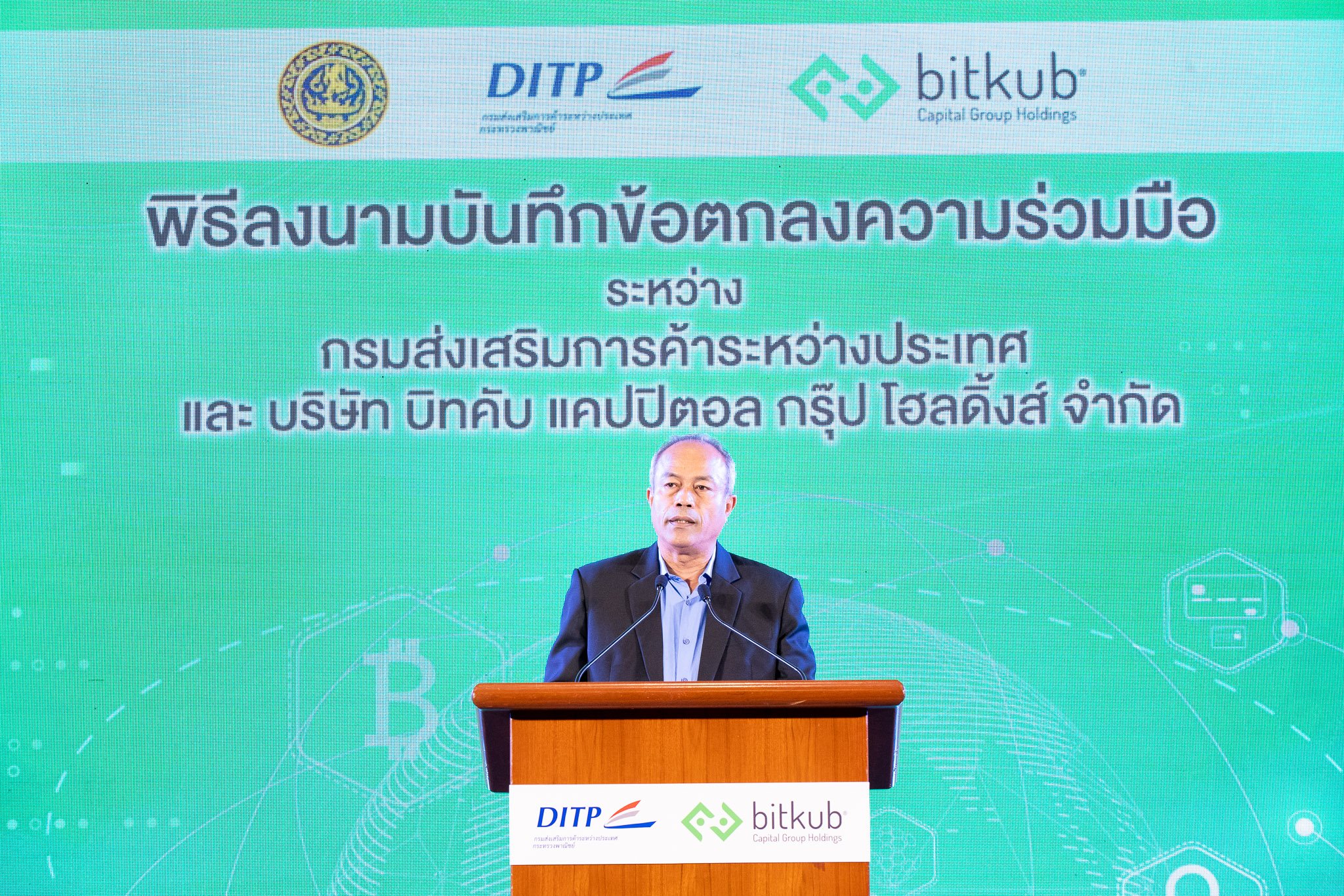 ผมมีความรู้สึกยินดีเป็นอย่างยิ่งที่ทราบว่าในปีผ่านมากรมส่งเสริมการค้าระหว่างประเทศมีการพัฒนาบุคลากรจำนวนกว่า 2 หมื่นคน สิ่งนี้จะช่วยให้ประเทศไทยแข็งแกร่งมากยิ่งขึ้นและสามารถสร้างเศรษฐกิจยุคใหม่ขึ้นมาได้สำเร็จ บิทคับ มีวิสัยทัศน์ที่ชัดเจน คือ การสร้างโครงสร้างพื้นฐานเศรษฐกิจดิจิทัล บนเทคโนโลยีบล็อกเชนและเทคโนโลยีที่เกี่ยวข้อง เพื่อเปิดโอกาสให้ประชาชนทั่วไปเข้าถึงได้อย่างปลอดภัยและมั่นใจ เป็นสะพานเชื่อมโยงโอกาสทางเศรษฐกิจระหว่างโลกเดิมกับโลกดิจิทัล