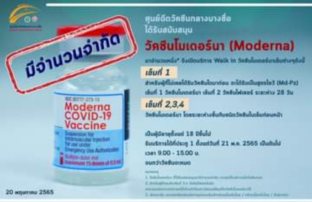 1. วัคซีนโมเดอร์นา ที่ได้รับสนับสนุนมามีจำนวนจำกัด