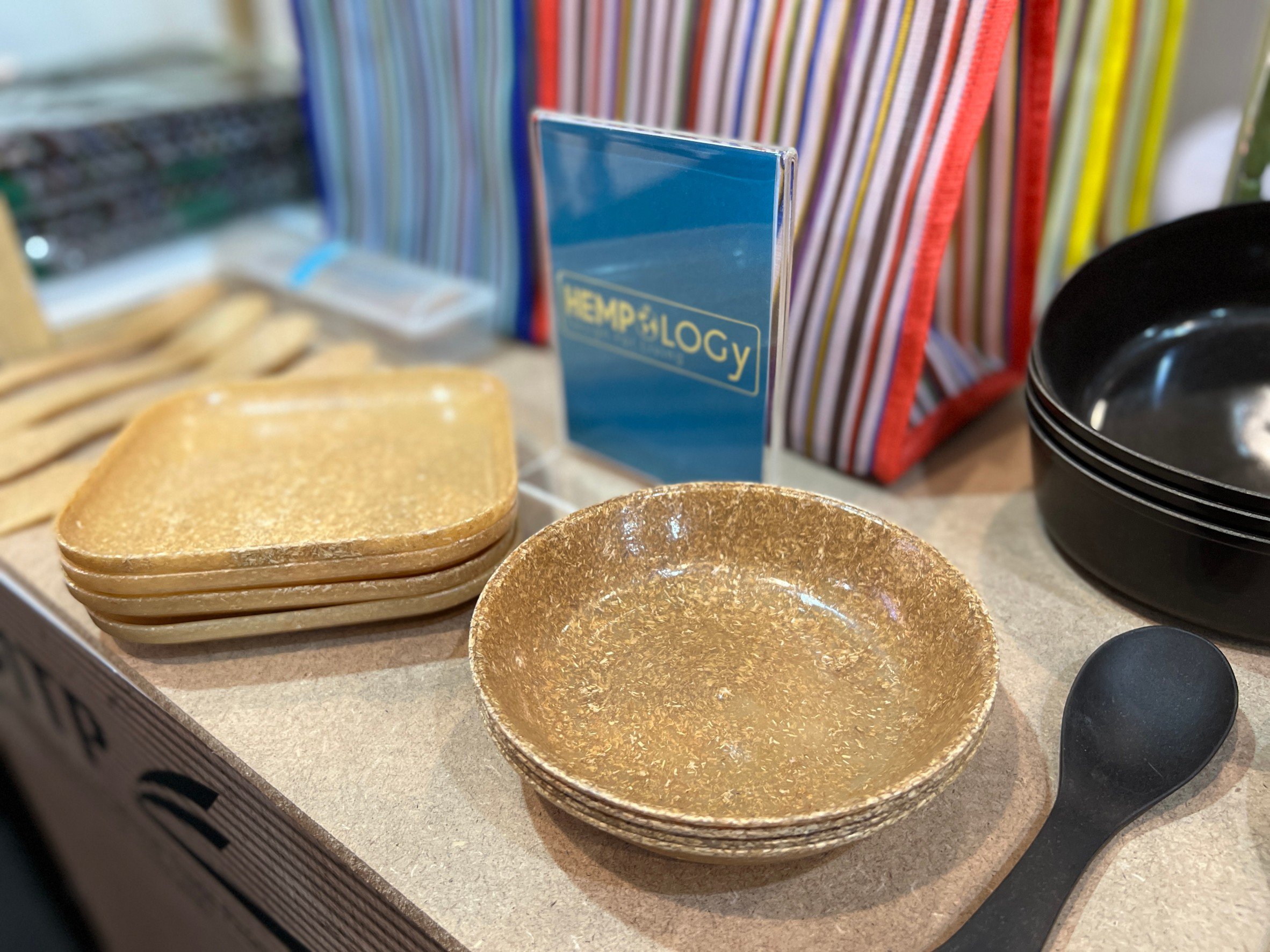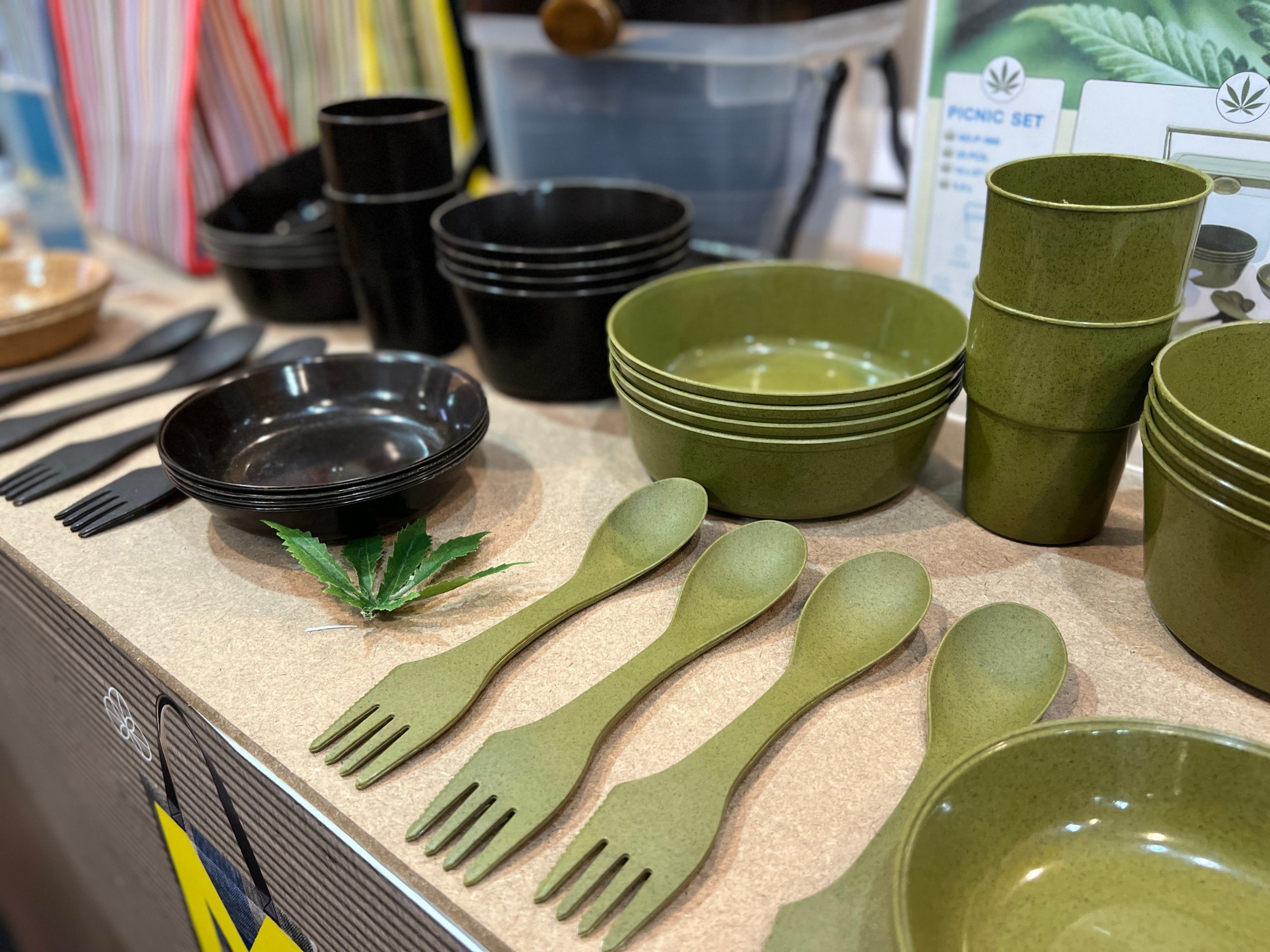 งานนี้ทำให้เห็นว่า ผู้ผลิตรายใหญ่ของแวดวงสินค้าจากวัสดุ PE มากกว่า 40 ปีอย่าง บริษัท สหชัย โปรโมชั่น จำกัด ยังกระโดดเข้ามาจับวัสดุธรรมชาติอย่างกัญชง ฟางข้าว และเศษไม้ โดยแสงชัย จิตบุญทวีสุข รองกรรมการ ผู้จัดการ นำแบรนด์ Hempology ภาชนะใส่อาหารที่ทำจากเส้นใยกัญชง ผสมพลาสติกย่อยสลายได้ เกรด A รูปทรงสวยงาม น้ำหนักเบา มาเปิดตัวครั้งแรกในงานนี้ โดยเป้าหมายของแบรนด์คือผลิตภาชนะเพื่อให้ใช้งานซ้ำให้ได้มากที่สุด ย่อยสยายได้ภายใน 5-10 ปี โดยไม่ทิ้งสารตกค้าง และสามารถนำไปรีไซเคิลได้ ซึ่งได้รับความสนใจไม่น้อยจากผู้ซื้อชาวญี่ปุ่น