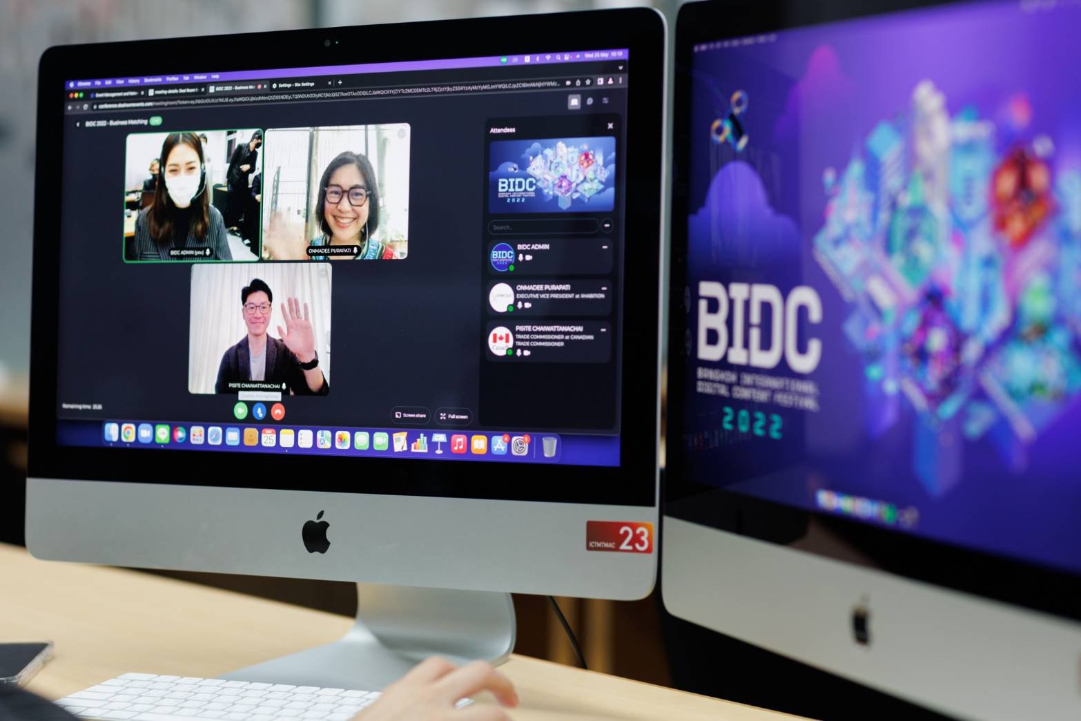 ตัวอย่างผลการเจรจาธุรกิจออนไลน์ที่โดดเด่นในงาน BIDC 2022 ได้แก่ Quantum Peaks โดยศูนย์นวัตกรรมการออกแบบดิจิทัลและเทคโนโลยี (DIDTC) ได้นำเสนอเกมประเภท Platformer ให้แก่ Sega บริษัทเกมชั้นนำจากประเทศญี่ปุ่นซึ่งได้รับความสนใจในการนำไปขายในตลาดโลก บริษัท Riff Studio (ASAP Corporation) นำเสนอภาพยนตร์แอนิเมชั่นเรื่องหนุมานนักรบมนตรา ได้รับความสนใจจากบริษัทต่างชาติ อาทิ Brown Bag Film และ Shanghai Brandwork Cultural Communication เป็นต้น และ บริษัท Pro Toys ได้นำเสนอบริการ 3D Scan Photogrammetry (นวัตกรรมสแกนภาพ 3 มิติ) เพื่อสร้างโมเดลคน ซึ่งได้รับความสนใจจาก Dangen Entertainment และ Xanthus Animation Studio