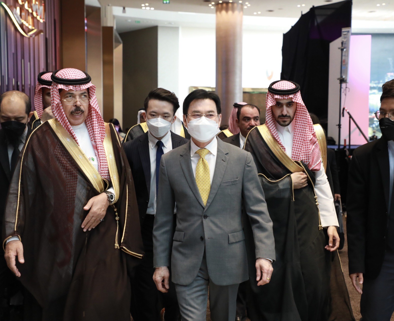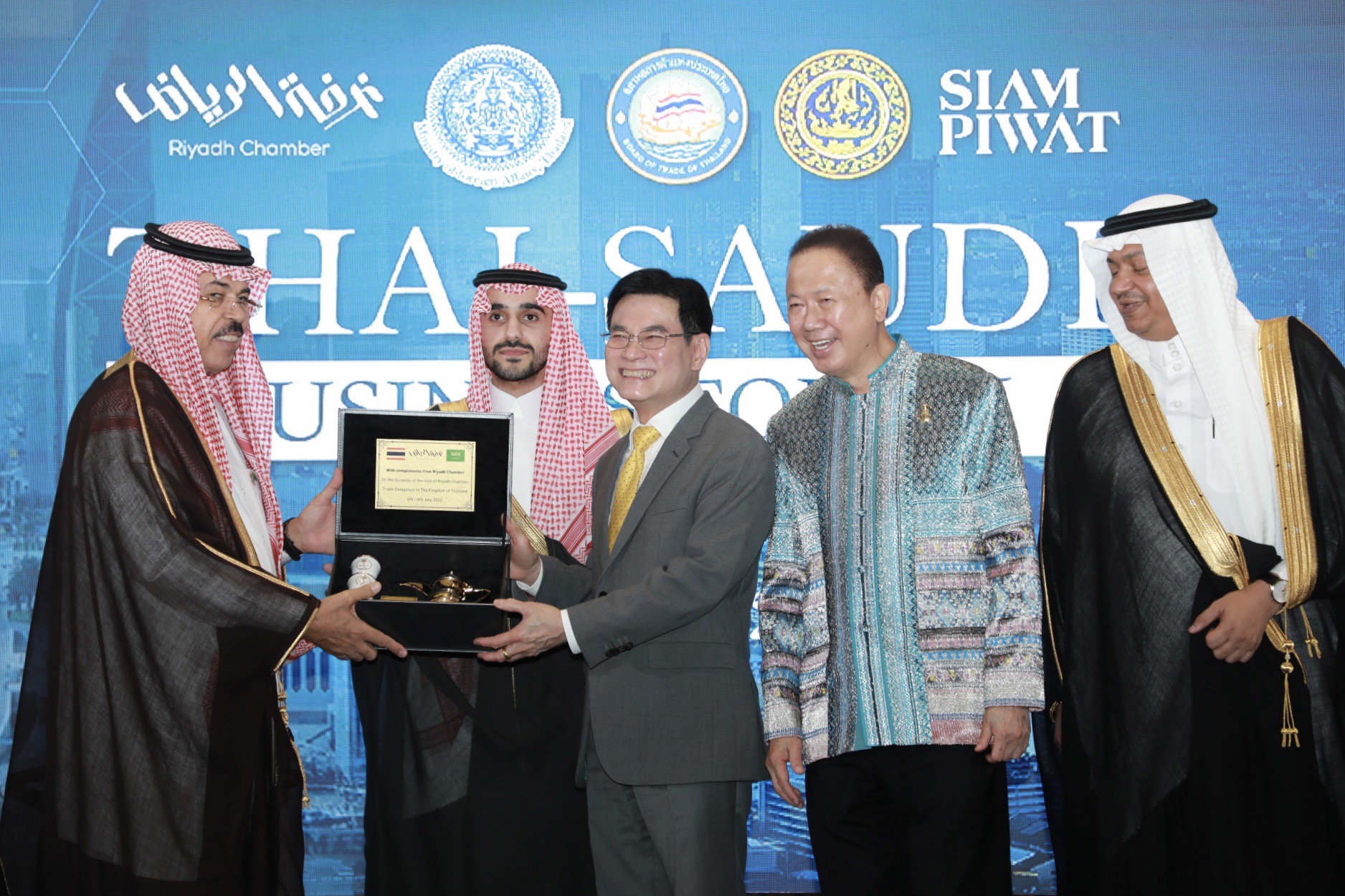 นายจุรินทร์ กล่าวว่า วันนี้ถือเป็นวันประวัติศาสตร์อีกวันหนึ่งของการค้าการลงทุนของประเทศไทยกับซาอุดีอาระเบีย ที่นักธุรกิจของทั้งสองประเทศได้มีโอกาสพบกัน นับตั้งแต่ท่านนายกรัฐมนตรี นำคณะจากประเทศไทยเปิดสัมพันธ์ไมตรีอีกครั้งหนึ่งกับซาอุดีอาระเบีย ซึ่งนับจากนี้ต่อไปประเทศไทยจะได้สานต่อความสัมพันธ์กับซาอุดีอาระเบียในรูปแบบต่างๆ ทั้งการค้าการลงทุนและด้านอื่นๆ ด้านการค้าถือว่าซาอุดีอาระเบียเป็นคู่ค้าสำคัญของประเทศไทย และเป็นประเทศที่มีความสำคัญทั้งด้านการเมืองระหว่างประเทศและเศรษฐกิจประเทศหนึ่งของโลก มูลค่าการค้าระหว่างไทยกับซาอุดีอาระเบียปีที่แล้วมีมูลค่ารวมกันถึง 234,000 ล้านบาท ประเทศไทยส่งออกไปซาอุดีอาระเบียปีที่แล้ว 51,000 ล้านบาท ยังขาดดุลซาอุดีอาระเบียอยู่เยอะเพราะประเทศไทยนำเข้าพลังงานจากซาอุดีอาระเบียเยอะมาก สำหรับการส่งออก 5 เดือนแรกของปีนี้ ประเทศไทยส่งออกไปซาอุดีอาระเบียถึง 25,000 ล้านบาท เพิ่มขึ้น 23.3%และตั้งเป้าว่าปีนี้ประเทศไทยจะส่งออกไปซาอุดีอาระเบียให้ได้ 56,000 ล้านบาท ให้มากกว่าปีที่แล้วไม่ต่ำกว่า 6%