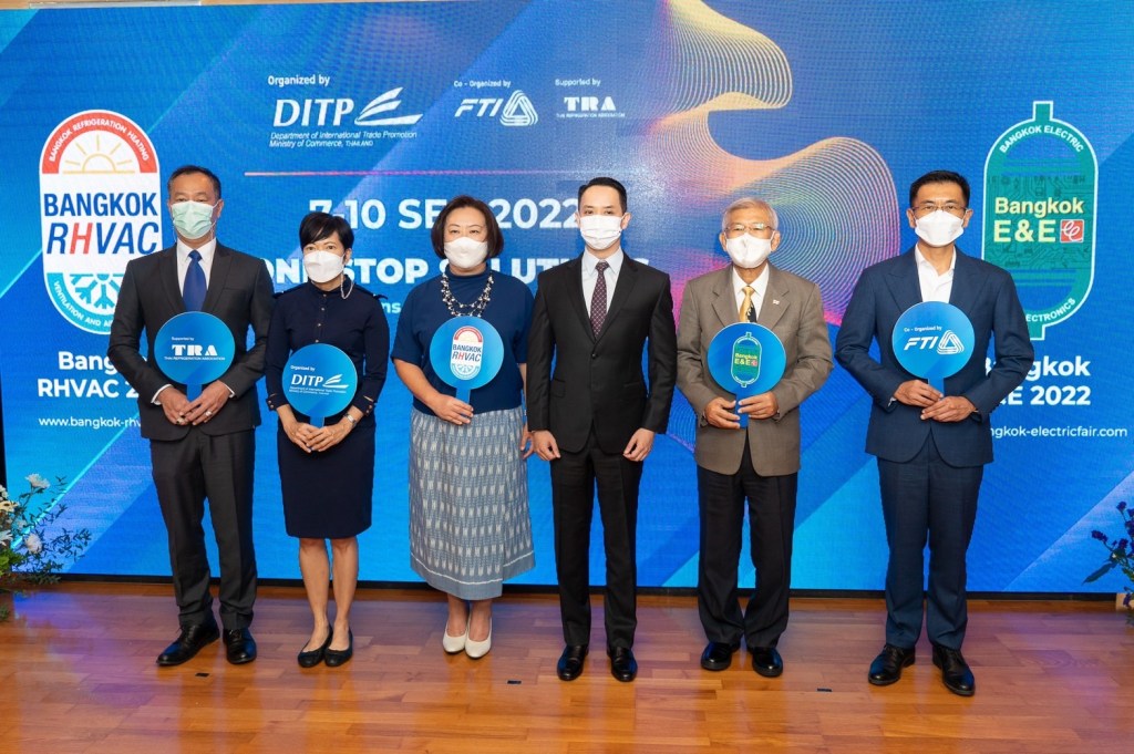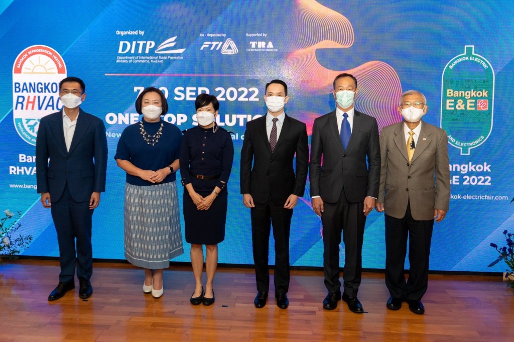 นายนันทพงษ์ จิระเลิศพงษ์ รองอธิบดีกรมส่งเสริมการค้าระหว่างประเทศ กระทรวงพาณิชย์ เปิดเผยในงานแถลงข่าวงานแสดงสินค้าเครื่องปรับอากาศและเครื่องทำความเย็น 2565 (Bangkok RHVAC 2022) และงานแสดงสินค้าเครื่องใช้ไฟฟ้าและอิเล็กทรอนิกส์ 2565 (Bangkok E&E 2022) ว่า กรมส่งเสริมการค้าระหว่างประเทศ ร่วมกับกลุ่มอุตสาหกรรมเครื่องปรับอากาศและเครื่องทําความเย็น และกลุ่มอุตสาหกรรมไฟฟ้าและอิเล็กทรอนิกส์ สภาอุตสาหกรรมแห่งประเทศไทย เตรียมจัดงาน Bangkok RHVAC 2022 และ Bangkok E&E 2022 ขึ้นอีกครั้งในรอบ 3 ปี หลังจากว่างเว้นไปเนื่องจากสถานการณ์การแพร่ระบาดของโควิด-19 โดยทั้งสองงานจะจัดขึ้นพร้อมกันภายใต้แนวคิด One Stop Solutions พร้อมนวัตกรรมใหม่เพื่อตอบรับความท้าทายใหม่ๆ ของโลก (New Innovations for New Global Challenges) ซึ่งจะเป็นการโชว์ศักยภาพของผู้ประกอบการไทยด้วยสินค้านวัตกรรมล้ำหน้าที่ตอบรับความท้าทายที่โลกต้องเผชิญ ทั้งโรคระบาด และปัญหาสิ่งแวดล้อม โดยได้รวบรวมสินค้าและบริการไว้อย่างครบครัน อาทิ แบรนด์ผู้ผลิตเครื่องปรับอากาศ ตู้เย็น ตู้แช่แข็ง ไปจนถึงผู้ผลิตคอมเพรสเซอร์ อุปกรณ์ และส่วนประกอบในระบบทำความเย็น ตลอดจนผู้ผลิตเครื่องใช้ไฟฟ้าและอิเล็กทรอนิกส์ ทั้งเครื่องใช้ไฟฟ้าในครัวเรือน และอุปกรณ์ไฟฟ้าอุตสาหกรรม รวมกว่า 100 บริษัท 400 คูหา บนพื้นที่ 10,000 ตารางเมตร