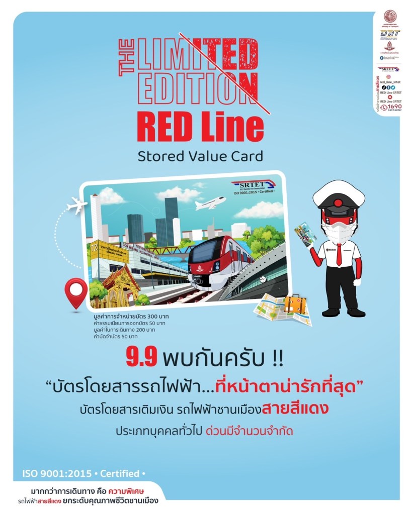 นอกจากนี้ บริษัทยังได้ออกบัตรโดยสารแบบเติมเงิน ประเภทบุคคลทั่วไป “The Limited Edition RED Line Stored Value Card” บัตรรถไฟฟ้าลายพิเศษโดยจะมีการเปิดจำหน่ายครั้งแรก(Pre-sale) ในวันที่ 1 กันยายน 2565 ที่สถานีตลิ่งชัน ตั้งแต่เวลา 05.30 – 24.00 น. ซึ่งผู้โดยสารที่ซื้อบัตรในวันดังกล่าวสามารถนำบัตรโดยสารมาแลกบัตรของขวัญมูลค่า 100 บาท และซองใส่บัตรโดยสารที่ออกแบบมาเป็นพิเศษฟรี 1 ท่านต่อ 1 สิทธิ์ ต่อของขวัญ 2 ชิ้น ที่บูธกิจกรรมส่งเสริมการตลาด ณ สถานีตลิ่งชันเท่านั้น ตั้งแต่เวลา 8.30 – 16.00 น. หรือจนกว่าของจะหมด และจะมีการเปิดจำหน่ายบัตรโดยสารอย่างเป็นทางการพร้อมกันทุกสถานีอีกครั้ง ในวันที่ 9 เดือน 9 (9 กันยายน 2565)
