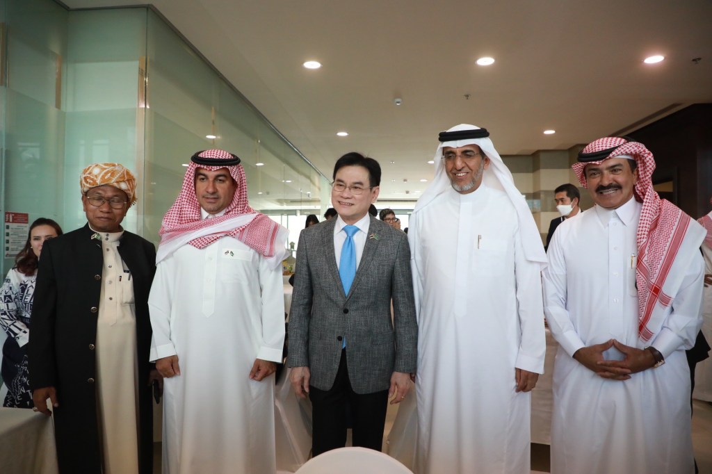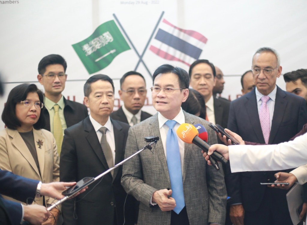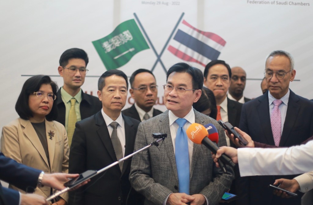 นายจุรินทร์ ลักษณวิศิษฏ์ หัวหน้าพรรคประชาธิปัตย์ รองนายกรัฐมนตรีและรัฐมนตรีว่าการกระทรวงพาณิชย์ พร้อมด้วยผู้แทนภาครัฐและเอกชน แถลงข่าวภายหลังการพบหารือกับประธานสภาหอการค้าซาอุดีอาระเบีย คือ มร.อัจลาน อะลาจลัน และเปิดงาน Saudi-Thai Business Forum ที่สภาหอการค้าซาอุดีอาระเบีย(Federation of Saudi Chamber) วานนี้(29 ส.ค. 65 เวลาท้องถิ่น 16.00 น.)