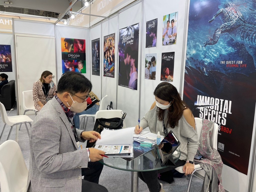 มูลค่าการค้าระหว่างประเทศไทยกับเกาหลีปีที่แล้วกว่า 15,000 ล้านเหรียญสหรัฐฯ เพื่อเป็นการดำเนินการตามความร่วมมือดังกล่าว กรมส่งเสริมการค้าระหว่างประเทศ ได้นำ 8 บริษัทคอนเทนต์ไทย ได้แก่ 9Naa Productions, Benetone Films, De Warrenne Pictures, Halo Productions, M Flow Entertainment, M Pictures, Right Beyond และ Thongkham Films เข้าร่วมเจรจาการค้างาน Asian Contents & Film Market 2022 ระหว่างวันที่ 8 – 11 ตุลาคม 2565 ณ อาคารแสดงสินค้า BEXCO ซึ่งจัดภายในเทศกาลภาพยนตร์นานาชาติ ปูซาน ครั้งที่ 27 เทศกาลภาพยนตร์นานาชาติที่ใหญ่ที่สุดในเอเชีย กรมฯได้นำผลงานซอฟพาวเวอร์ของไทยที่มีจุดเด่นในเรื่องความคิดสร้างสรรค์และวัฒนธรรม เสนอต่อผู้ซื้อ ผู้สร้าง นักลงทุนจากทั่วทุกมุมโลก เพื่อเพิ่มช่องทางการค้าสู่ต่างประเทศให้กับผู้ประกอบการอุตสาหกรรมภาพยนตร์และบริการเกี่ยวเนื่อง”
