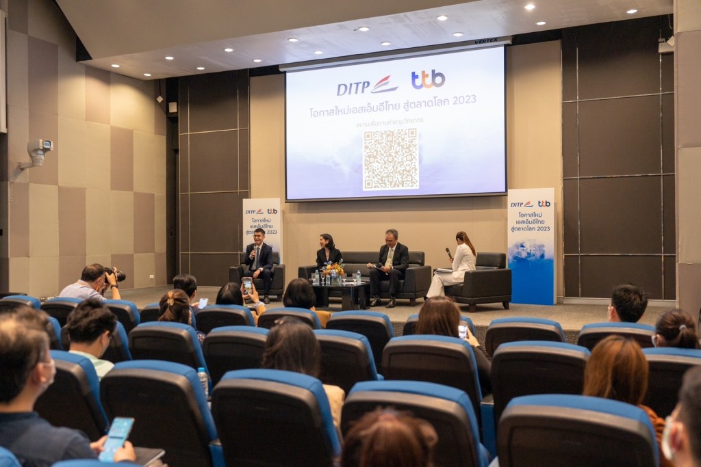 ด้านนายศรัณย์ ภู่พัฒน์ ประธานเจ้าหน้าที่บริหารลูกค้าธุรกิจ ทีเอ็มบีธนชาต กล่าวว่า ที่ผ่านมา ธนาคารได้มีการสนับสนุนและช่วยเสริมศักยภาพและความสามารถในด้านต่างๆ ให้กับผู้ประกอบการ SMEs เพื่อให้ธุรกิจสามารถเติบโตได้อย่างแข็งแกร่งและมั่นคง โดยมีโครงการ finbiz by ttb โครงการเสริมความรู้สู่การเป็น Smart SME ที่เจาะลึกทุกบริบทของอุตสาหกรรมและเข้าใจธุรกิจในยุคดิจิทัลอย่างแท้จริงผ่านแพลตฟอร์มที่หลากหลาย ทั้งเว็บไซต์ โซเชียลมีเดีย และงานสัมมนา นอกจากนั้นยังคงมุ่งมั่นสู่การเป็นธนาคารพันธมิตร ที่ช่วยสนับสนุน SMEs ด้วยองค์ความรู้ ผลิตภัณฑ์ บริการ และดิจิทัลโซลูชัน ที่ครบครัน และถูกพัฒนาให้เหมาะสมกับ SMEs โดยเฉพาะ เพื่อให้สามารถขยายธุรกิจได้เต็มศักยภาพ ในงานดังกล่าว นอกจากมีการลงนาม MOU ระหว่าง DITP และทีเอ็มบีธนชาต แล้ว ยังมีการระดมวิทยากรผู้เชี่ยวชาญ ได้แก่ คุณพรวิช ศิลาอ่อน ผู้อำนวยการสำนักพัฒนาตลาดและธุรกิจไทยในต่างประเทศ 1 กรมส่งเสริมการค้าระหว่างประเทศ คุณบุษรัตน์ เบญจรงคกุล รองประธานเจ้าหน้าที่บริหาร หัวหน้าธุรกิจตลาดเงินและธุรกรรมระหว่างประเทศ ทีเอ็มบีธนชาต และคุณนริศ สถาผลเดชา รองประธานเจ้าหน้าที่บริหาร หัวหน้าศูนย์วิเคราะห์เศรษฐกิจ ทีเอ็มบีธนชาต มาเสริมพลังกันเตรียมความพร้อมให้แก่ผู้ประกอบการและผู้ส่งออกสินค้าของไทย เพื่อให้มีพร้อมในการแข่งขันในตลาดโลก ผ่านงานสัมมนาหัวข้อ “โอกาสใหม่เอสเอ็มอีไทยสู่ตลาดโลก 2023” นอกจากนี้ ในงานยังมีกิจกรรมการออกคูหาให้คำปรึกษาเกี่ยวกับบริการและกิจกรรมส่งเสริมผู้ประกอบการต่าง ๆ ของทั้งสององค์กรอีกด้วย