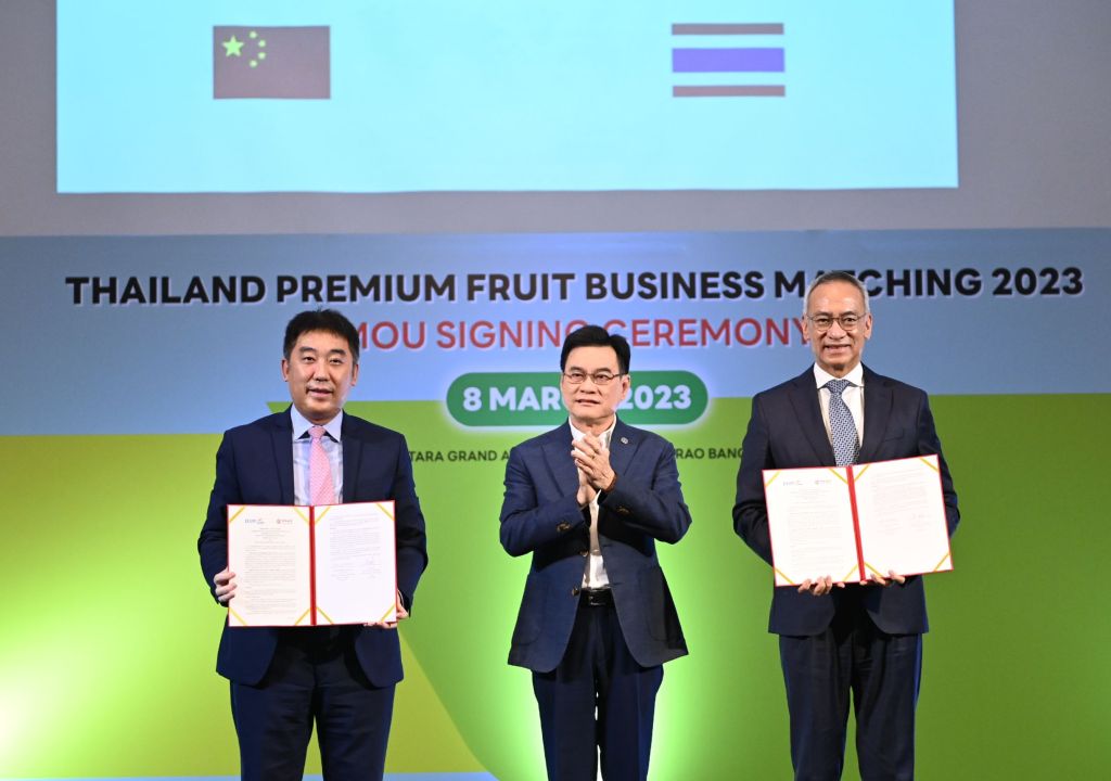 โดยนายจุรินทร์ กล่าวว่า ตัวเลขการส่งออก ผลไม้สดและแปรรูปของไทยดีขึ้นเป็นลำดับในปี 2565 ส่งออกผัก ผลไม้สด ผลไม้แปรรูป รวมกันถึง 4.5 ล้านตัน มูลค่า 8.3 พันล้านเหรียญสหรัฐ (290,000 ล้านบาท)ที่สร้างเงินให้ประเทศ และเดือน ม.ค. – ก.พ. 2566 เราส่งออกผักผลไม้สดและแปรรูปไปแล้ว 2.82 แสนตัน สร้างเงินให้ประเทศ 13,637 ล้านบาท เป็นไปตามนโยบายและยุทธศาสตร์ที่ตนมอบให้กระทรวงพาณิชย์ ภายใต้วิสัยทัศน์ “เกษตรผลิตพาณิชย์ตลาด” ยุทธศาสตร์ “ตลาดนำการผลิต” และยุทธศาสตร์การตลาด “เชิงรุกและเชิงลึก” ที่มอบหมายให้ทั้งการรักษาตลาดเดิมและเพิ่มตลาดใหม่ ช่วง 3-4 ปีที่ตนมารับผิดชอบดูแล สามารถรักษาตลาดผลไม้เดิมและเพิ่มตลาดใหม่ได้อย่างมีศักยภาพในหลายประเทศ เช่น จีน สหรัฐฯญี่ปุ่นและอีกหลายตลาด ช่วยเกษตรกรผู้ปลูกผลไม้ประมาณ 1,040,000 ครัวเรือน ยกระดับราคาผลไม้ช่วง 4 ปีดีทุกปีในภาพรวม เฉลี่ยราคาผลไม้ยุคนี้ดีที่สุดยุคหนึ่งในประวัติศาสตร์ เพราะเราสามารถทำตลาดส่งออกล่วงหน้าได้เยอะมาก ช่วยให้มีช่องทางระบาย สร้างอนาคตในปีนี้ให้กับราคาผลไม้ช่วยเกษตรกรสร้างเงินให้ประเทศมหาศาลตกไปหาเกษตรกรต่อไป