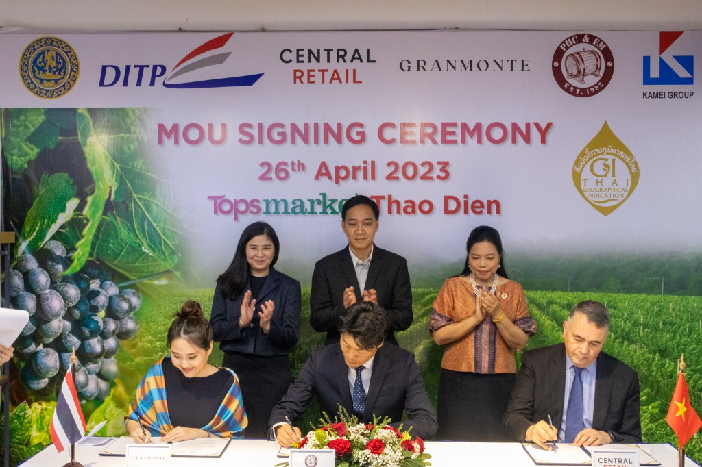 “ปลัดพาณิชย์”เป็นสักขีพยานในพิธีลงนามบันทึกความเข้าใจ (MOU) 3 ฝ่าย นำเข้าและจัดจำหน่ายไวน์ GranMonte เขาใหญ่ ที่เป็นสินค้า GI ไทยเข้าสู่ตลาดเวียดนาม มั่นใจช่วยเปิดตลาดไวน์ไทย และได้รับความนิยมเพิ่มขึ้นแน่ พร้อมมอบทูตพาณิชย์หาทางผลักดันสินค้า.GI.ไทยรายการอื่นๆเข้าสู่ตลาดเวียดนามเพิ่มขึ้น