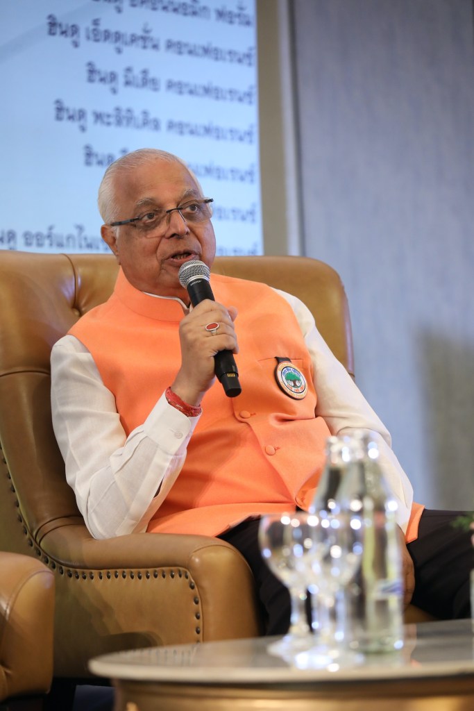 ในภาพจากซ้าย: อโชค ชวาลา (Ashok Chawla), ดร.โสภณา ศรีจำปา รองศาสตราจารย์ มหาวิทยาลัยมหิดล, ซูชีล กูมาร์ ซาราฟ (Susheel Kumar Saraff) ประธาน World Hindu Congress 2023, เชริ ซูชิล ดาห์นูก้า (Shri Sushil Dhanuka) ประธานหอการค้าอินเดีย-ไทย, และ เชริ ราจู บี มันวานิ (Shri Raju B Manwani) เลขาธิการ World Hindu Congress กรุงเทพฯ