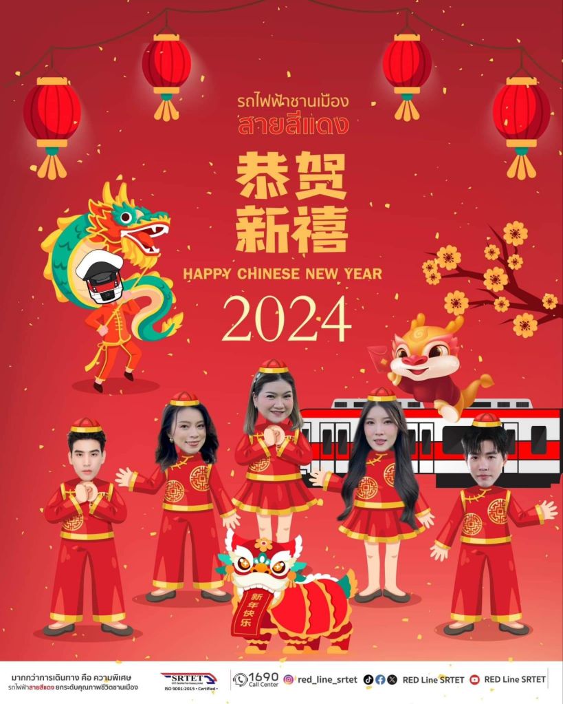 “ขบวนรถไฟแห่งความมั่งคั่ง ร่ำรวย โชคดีรับปีมังกรทอง” ฟังเพลงเพราะๆ จากวงประสานเสียงแชมป์โลกเหรียญทอง และรับของขวัญสุดพิเศษจาก 2 นักแสดงหนุ่มสุดหล่อ ตรุษจีนนี้ในขบวนรถไฟฟ้าสายสึแดง .. . ที่นี่ที่เดียวคร้บ