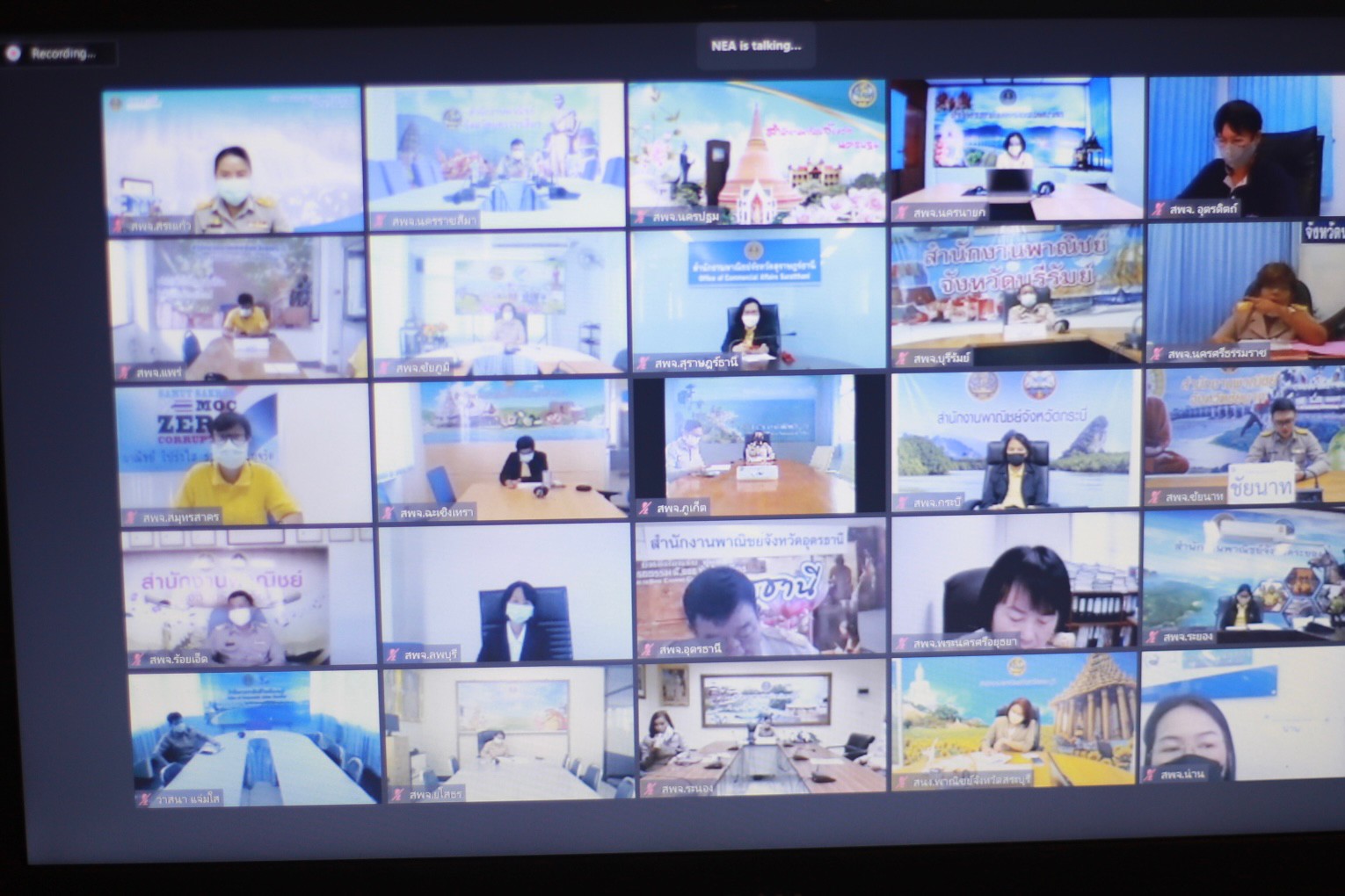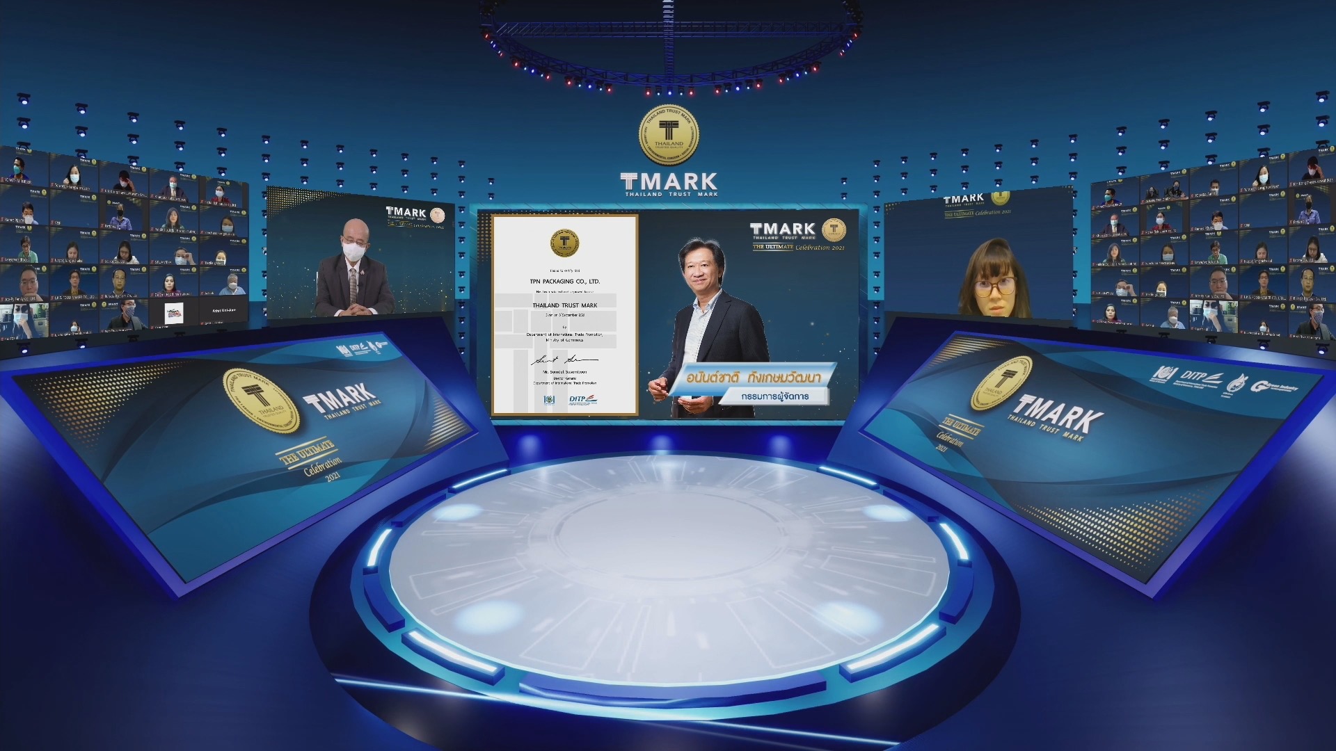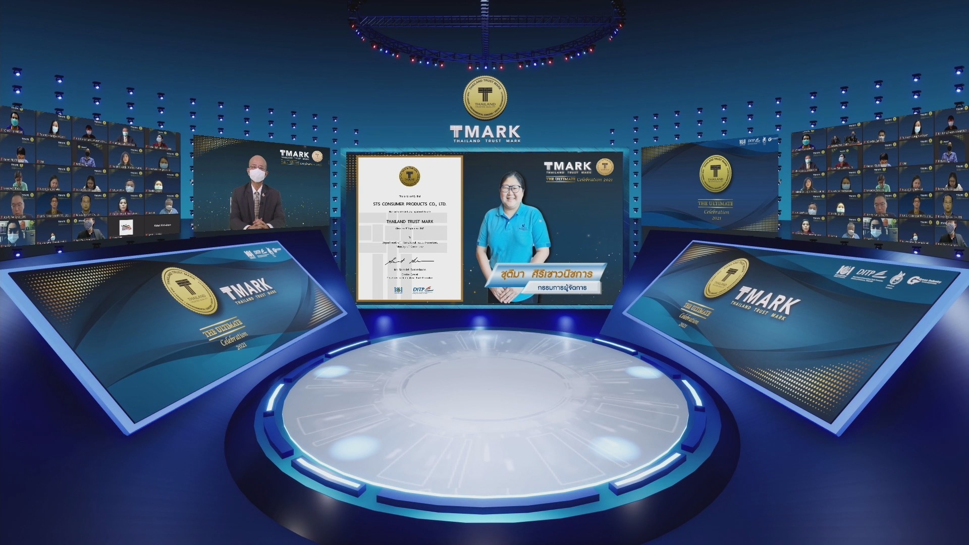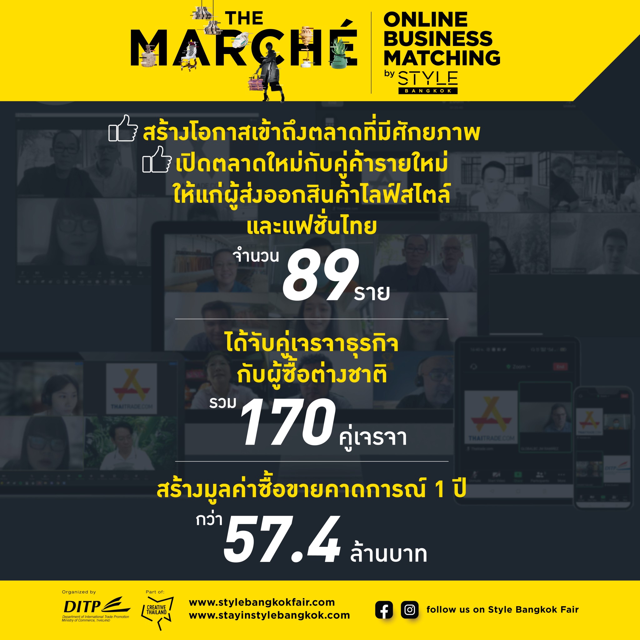 นายจุรินทร์ ลักษณวิศิษฏ์ หัวหน้าพรรคประชาธิปัตย์ รองนายกรัฐมนตรี และรัฐมนตรีว่าการกระทรวงพาณิชย์ นางมัลลิกา บุญมีตระกูล มหาสุข ที่ปรึกษารัฐมนตรีว่าการกระทรวงพาณิชย์ นายพิทักษ์ อุดมวิชัยวัฒน์ รองปลัดกระทรวงพาณิชย์ นายสมเด็จ สุสมบูรณ์ อธิบดีกรมส่งเสริมการค้าระหว่างประเทศ และ นายภูษิต รัตนกุล เสรีเริงฤทธิ์ ผู้อำนวยการสำนักงานนโยบายและยุทธศาสตร์การค้า ร่วมโครงการกระจายความรู้สู่ผู้ประกอบการยุคใหม่ (From Gen Z to be CEO) ผ่านระบบ Zoom ณ ห้องประชุมชั้น 11 กรมส่งเสริมการค้า ระหว่างประเทศ โดยมีผู้เข้าร่วม 1,500 คน